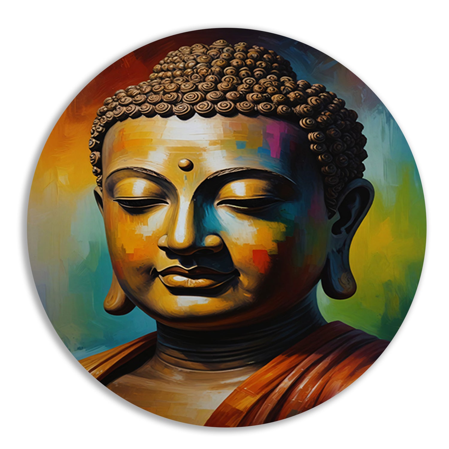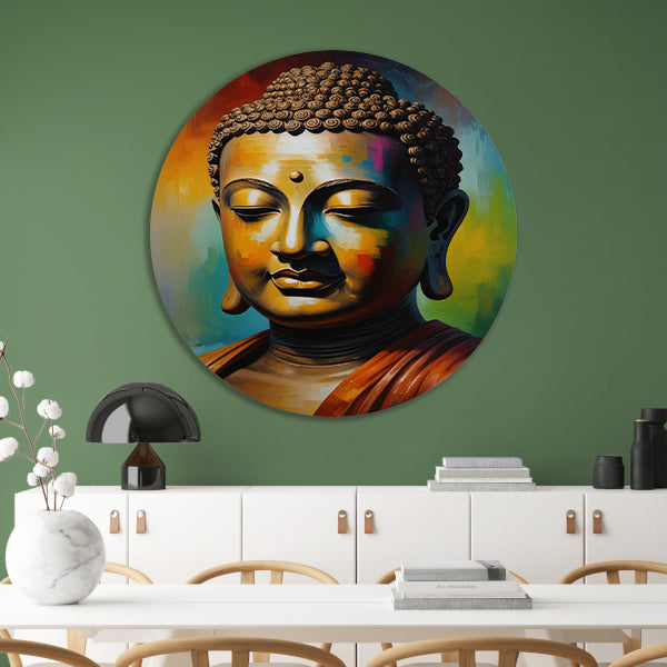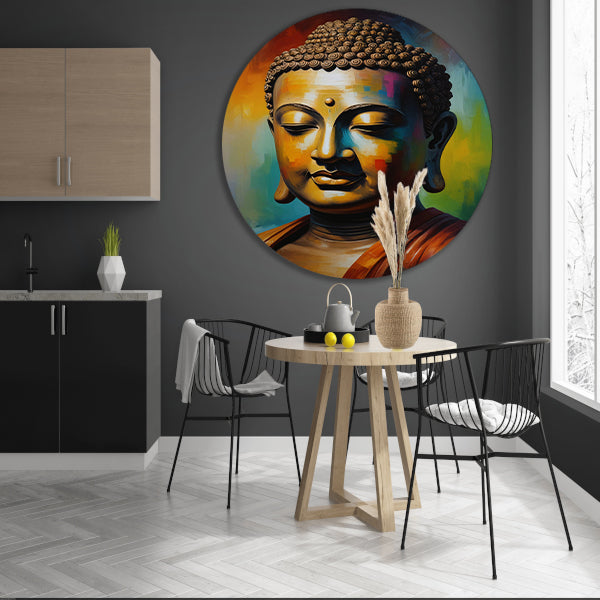 Boeddha in meditatie met kleurrijk palet forex muurcirkel