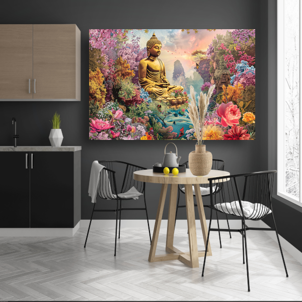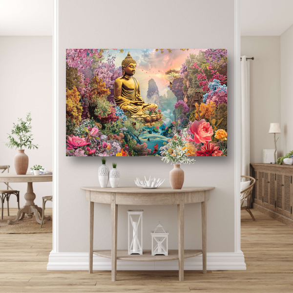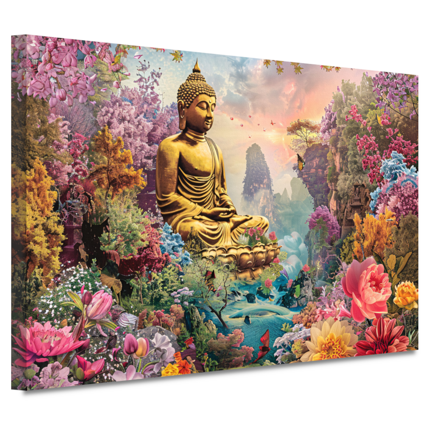 Boeddha Meditatie in Eclectische Bloementuin canvas