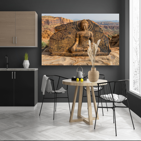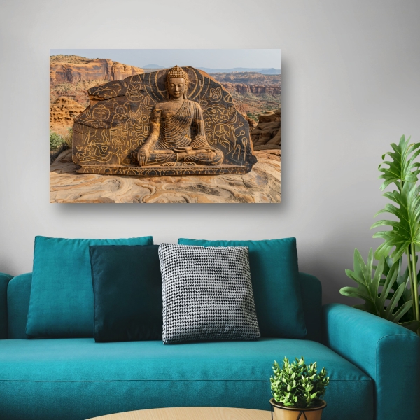 Boeddha met Antieke Petrogliefen op Steen canvas
