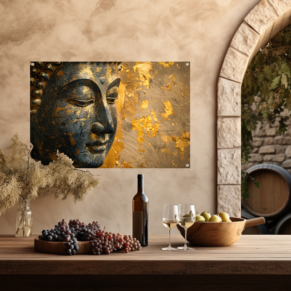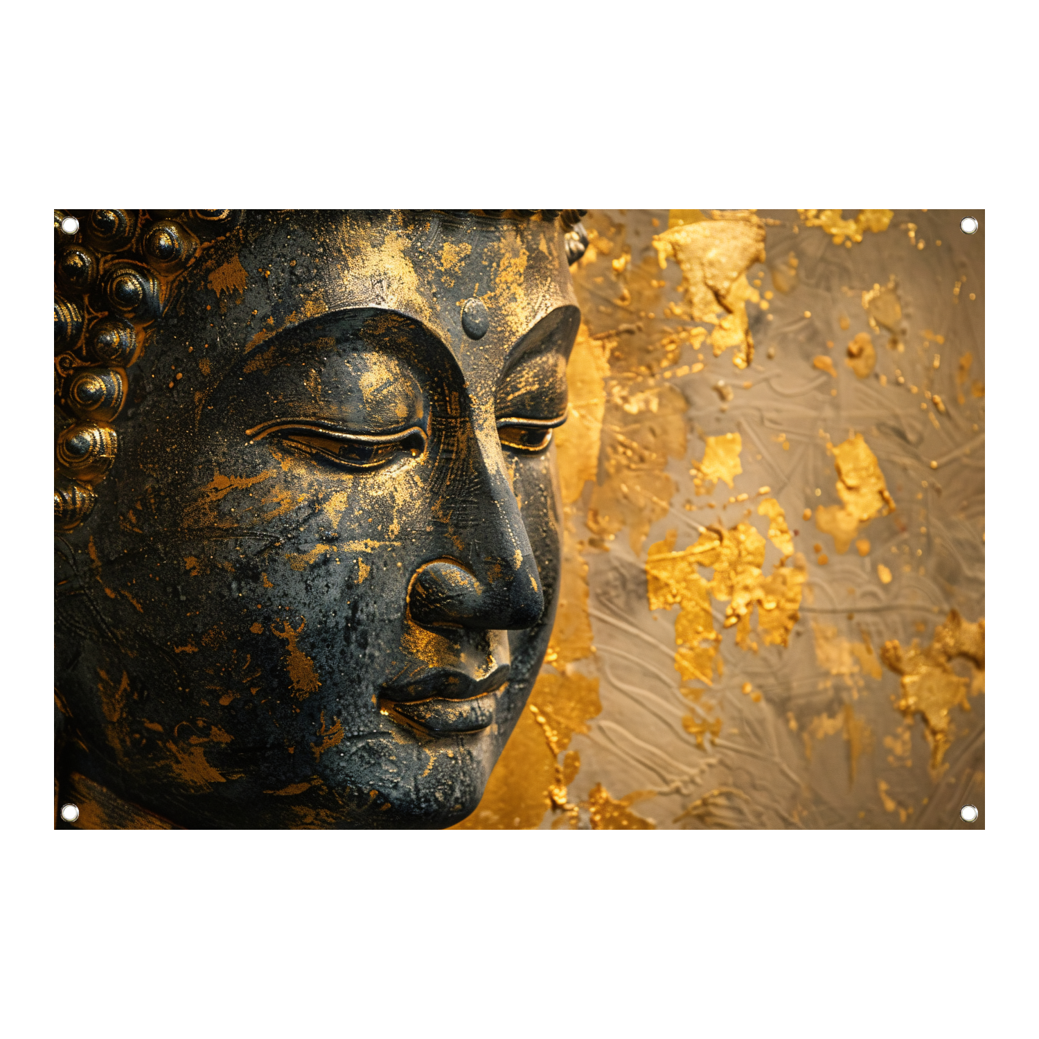 Boeddha Portret met Vergulde Versieringen tuinposter