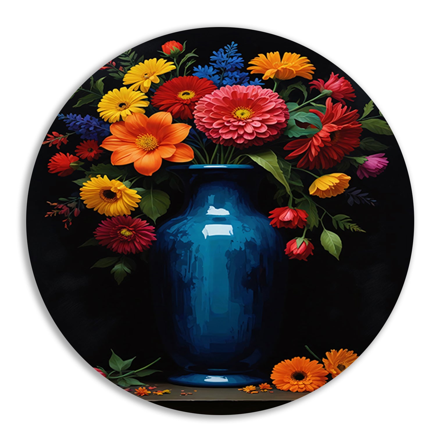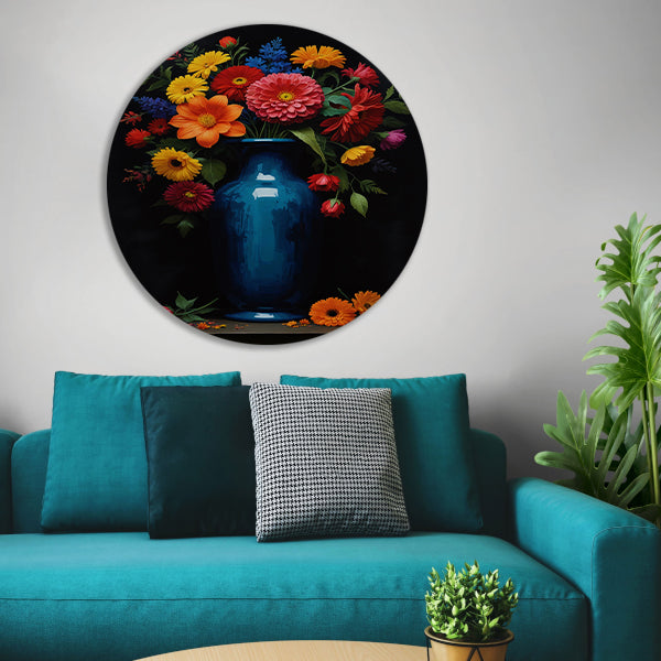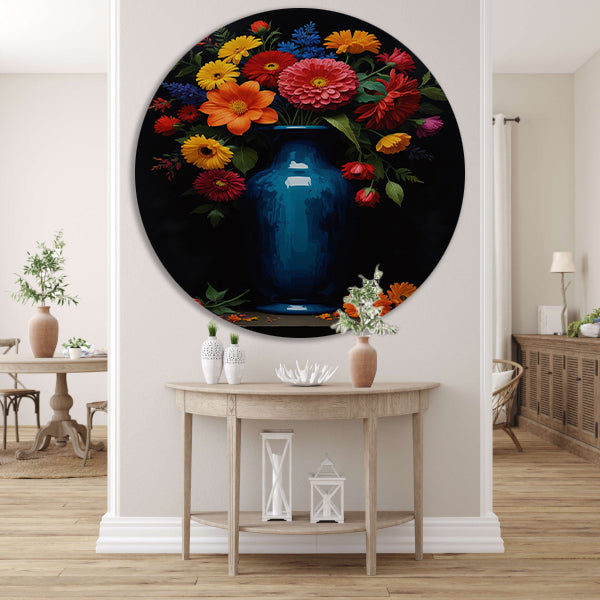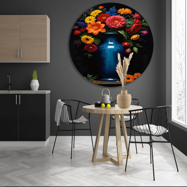 Boeket in Blauwe Vaas op Zwarte Achtergrond forex muurcirkel