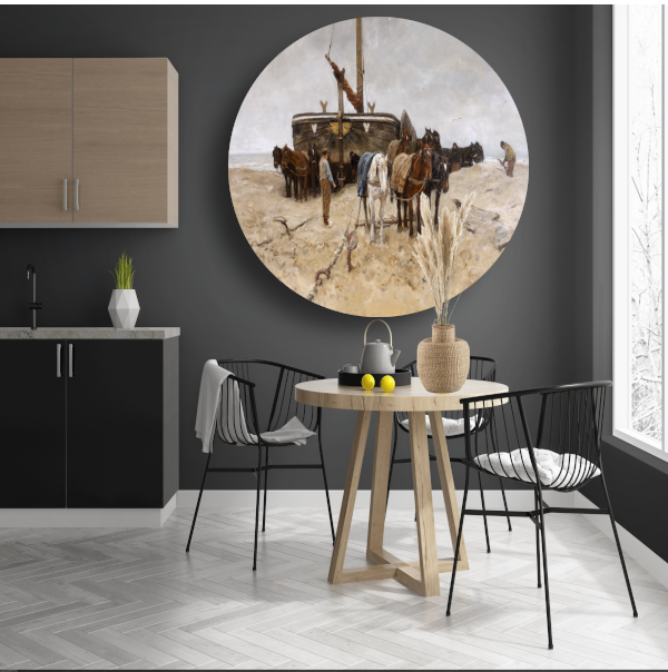 Bomschuit op het strand - Anton Mauve aluminium muurcirkel