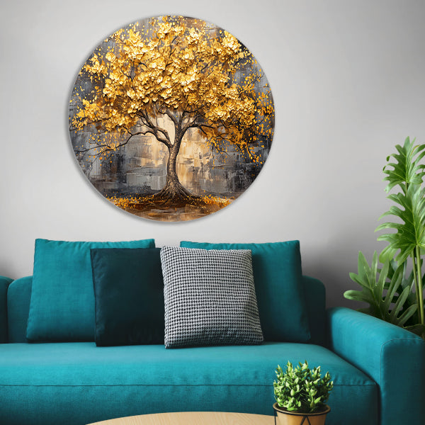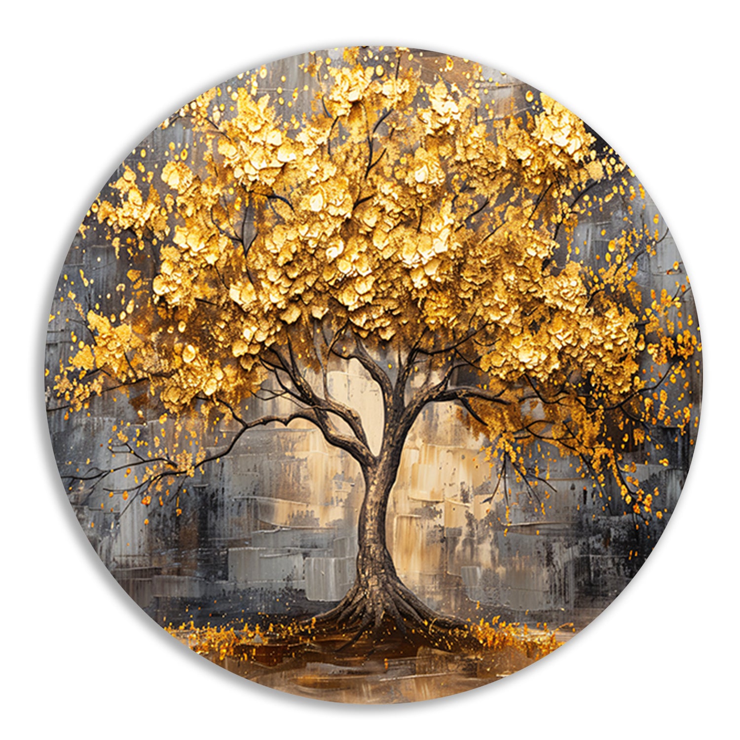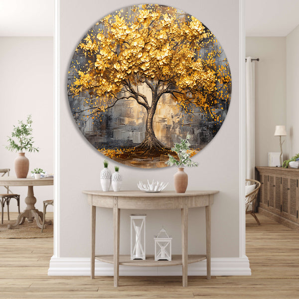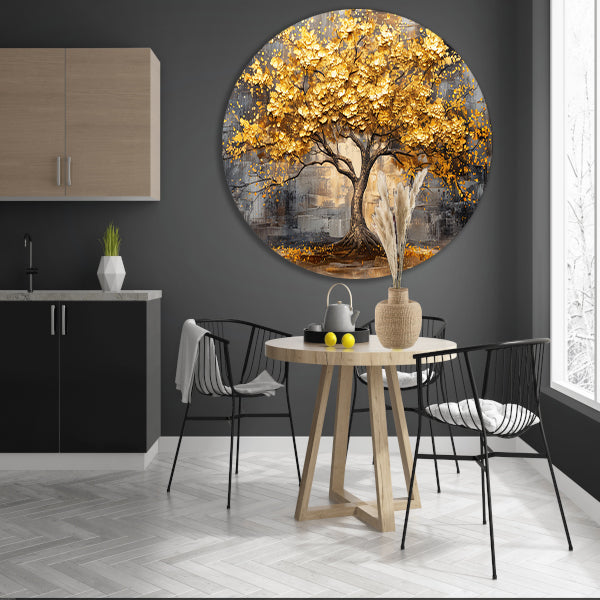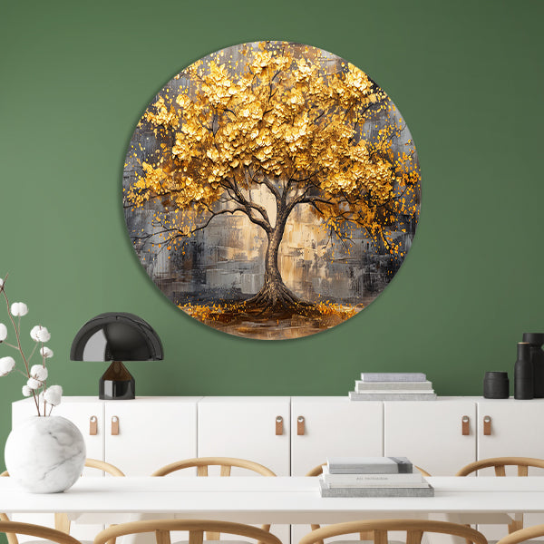 Boom met gouden bladeren tegen abstracte achtergrond forex muurcirkel