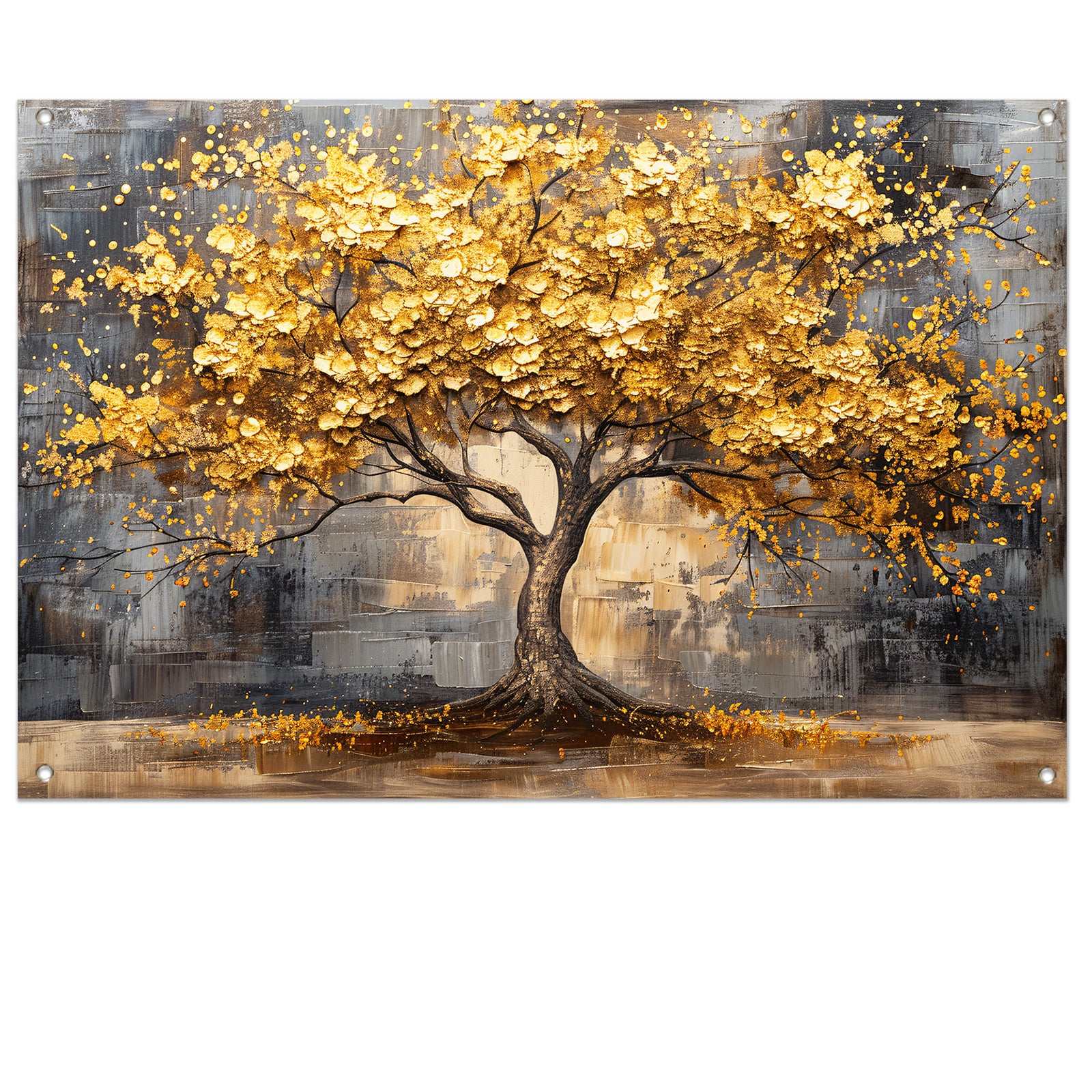 Boom met gouden bladeren tegen abstracte achtergrond tuinposter