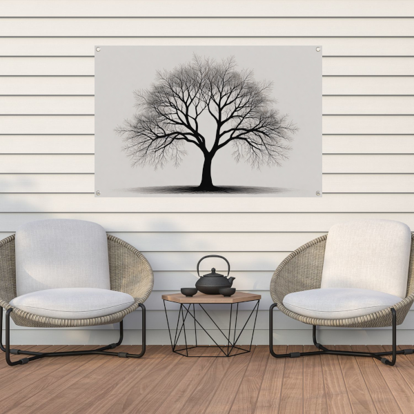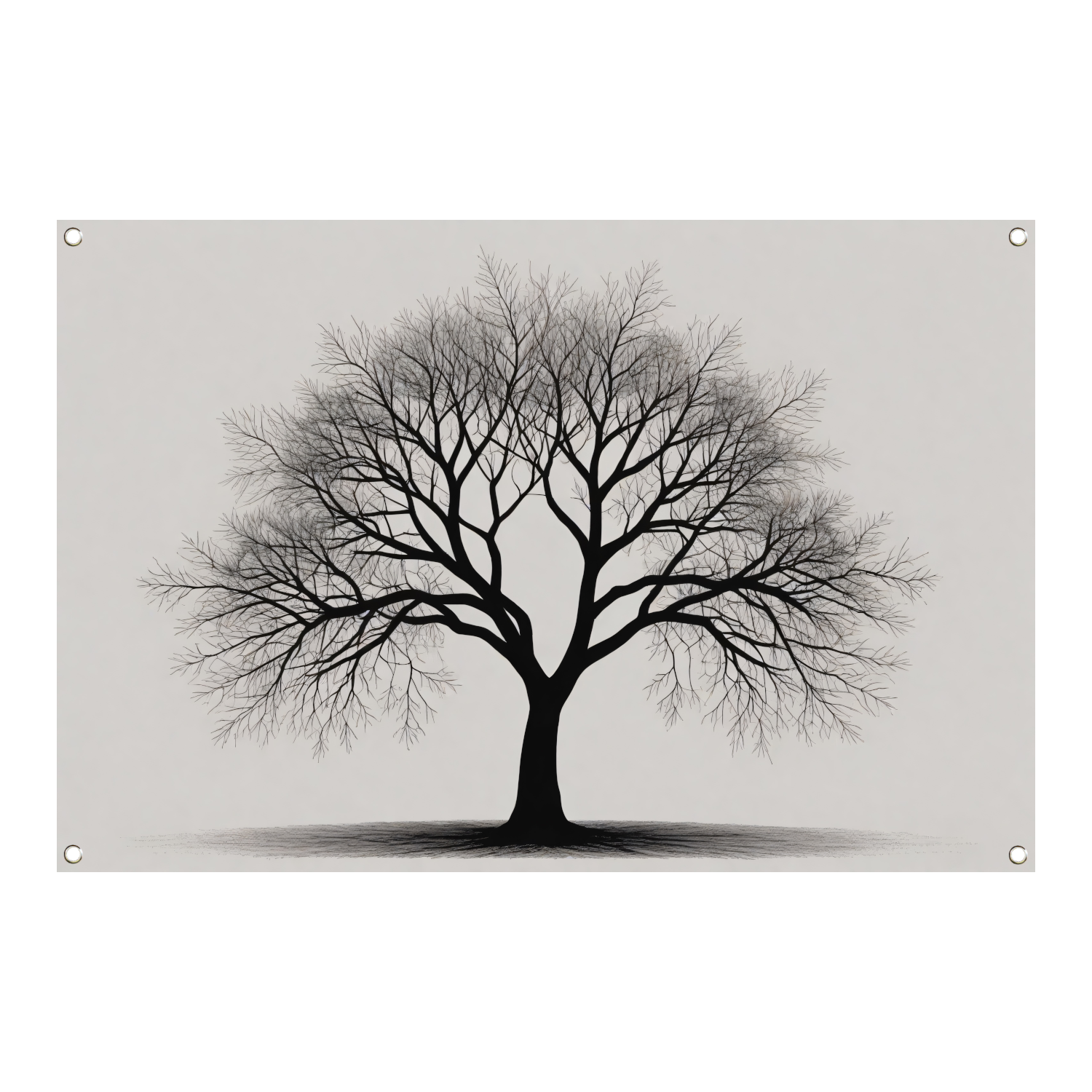 Boom Silhouet in Zwart-Wit Schaduw tuinposter