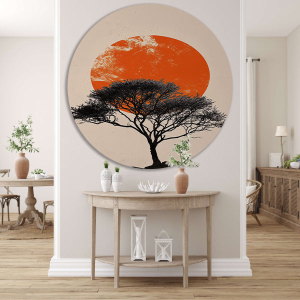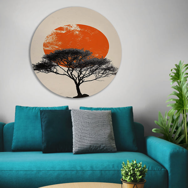 Deze aluminium muurcirkel is niet alleen decoratief, maar ook duurzaam en onderhoudsvriendelijk. Een prachtige toevoeging aan elke ruimte die een vleugje natuur en rust uitstraalt. Bestel vandaag nog jouw boom silhouet tegen oranje zonsondergang achtergrond muurcirkel en geniet van een uniek stukje kunst in huis.