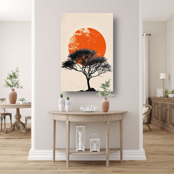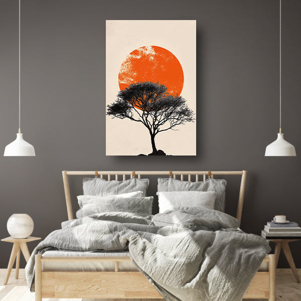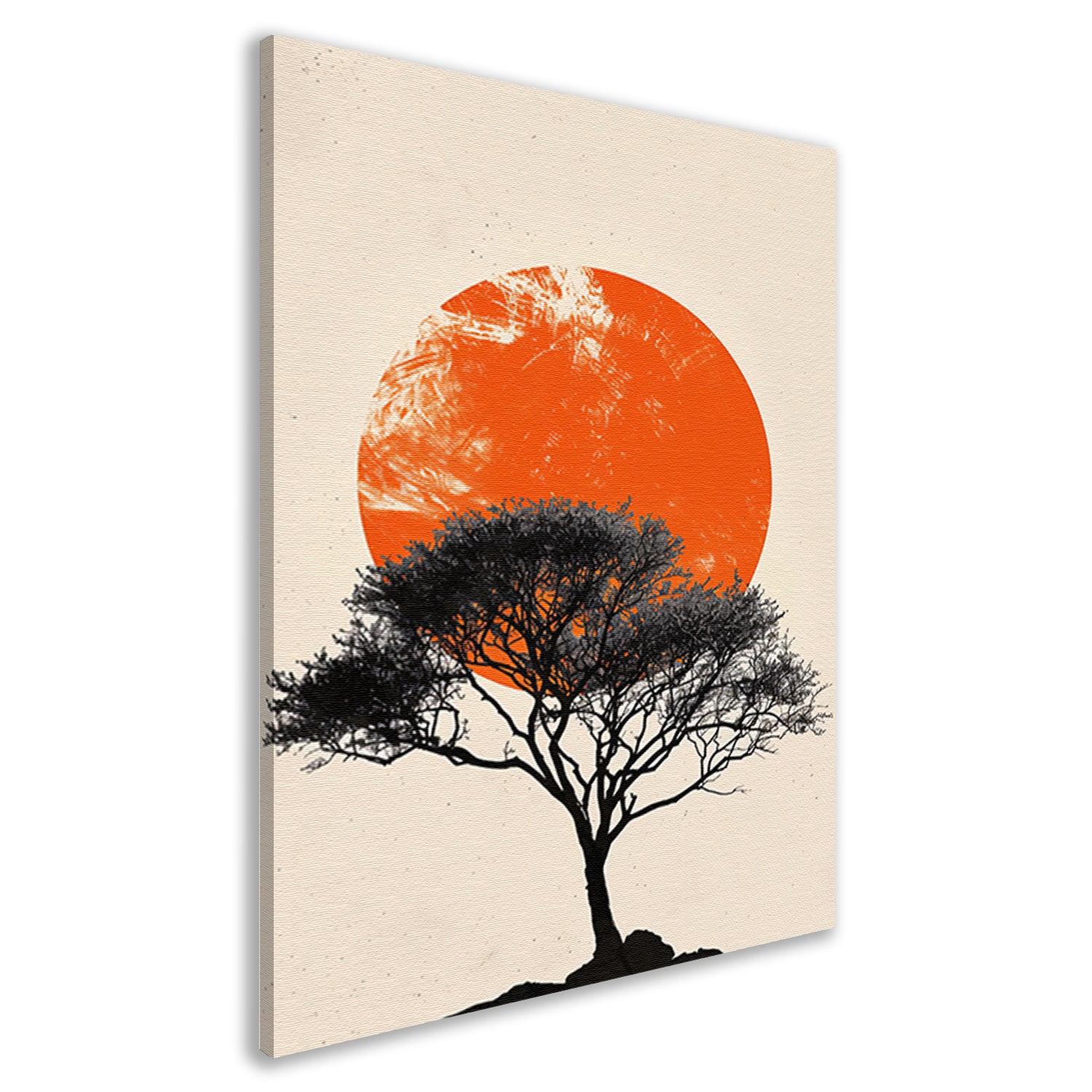 Boom silhouet tegen oranje zonsondergang achtergrond canvas
