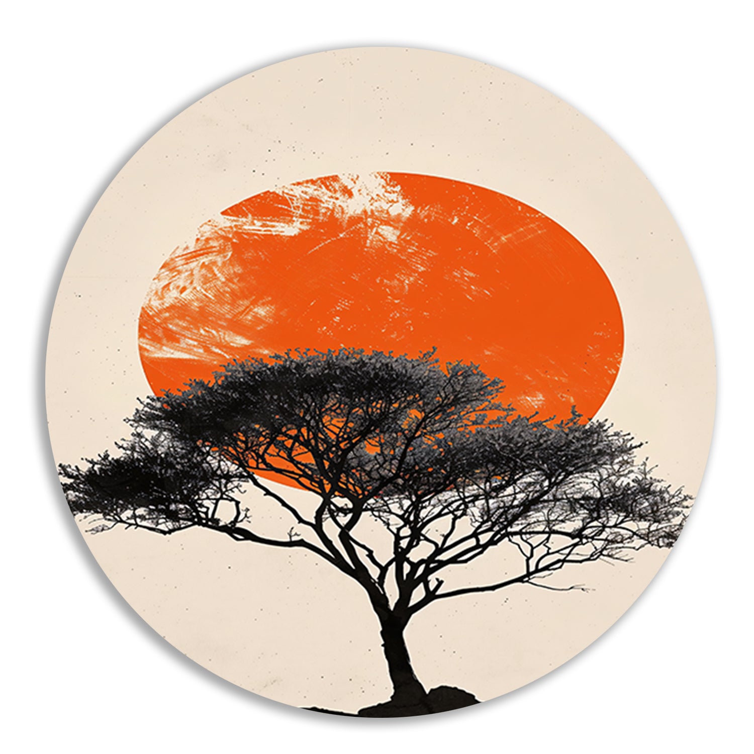 Boom silhouet tegen oranje zonsondergang achtergrond forex muurcirkel