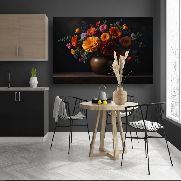 Een canvas met baklijst geeft je interieur een luxe en afgewerkte uitstraling. Onze baklijsten zijn gemaakt van hoogwaardig hout en verkrijgbaar in zwart met een zichtbare houtnerfstructuur, wat een moderne en elegante look biedt. De lijst heeft een framedikte van 3,5 cm. De montage van het canvas in de baklijst en aan de muur is eenvoudig.