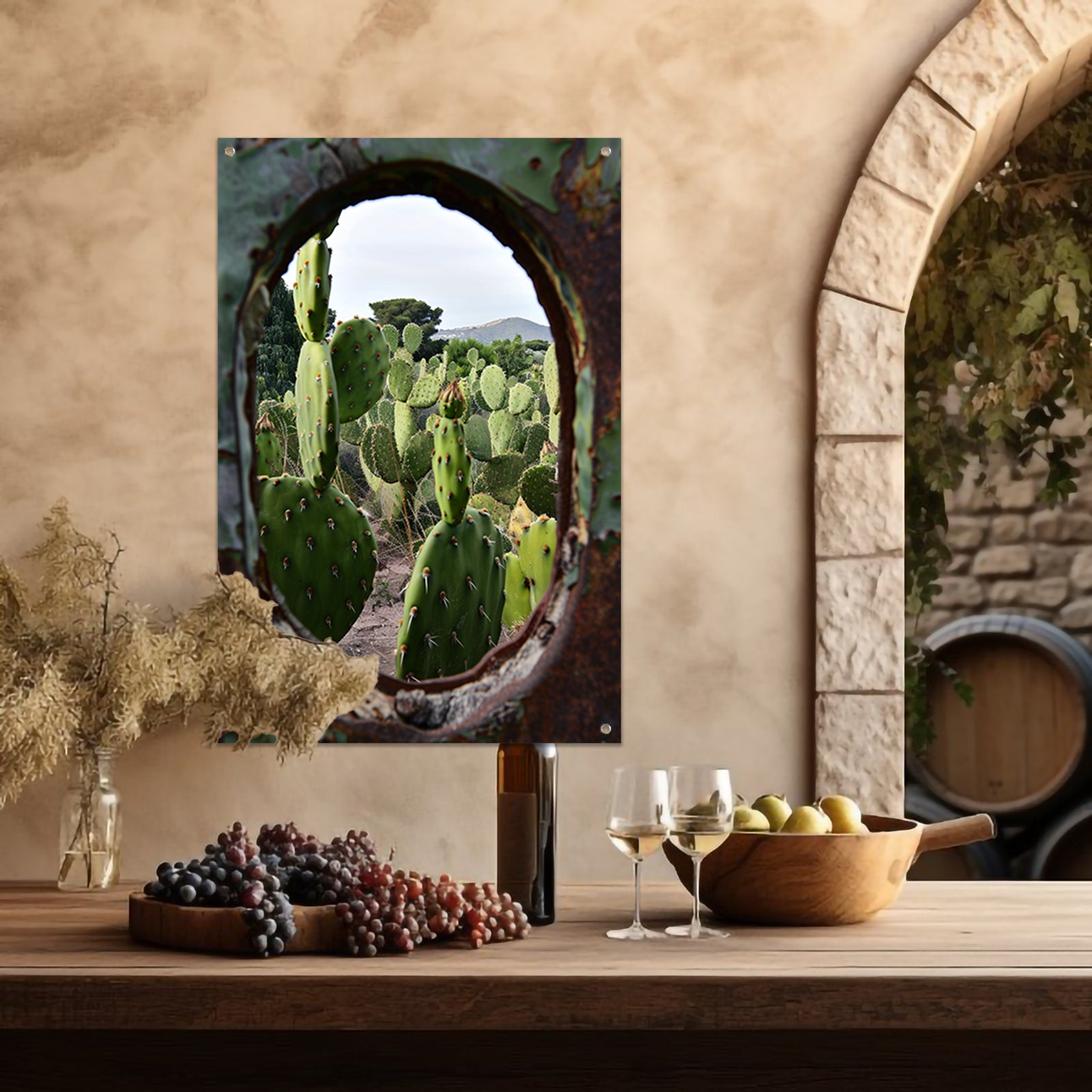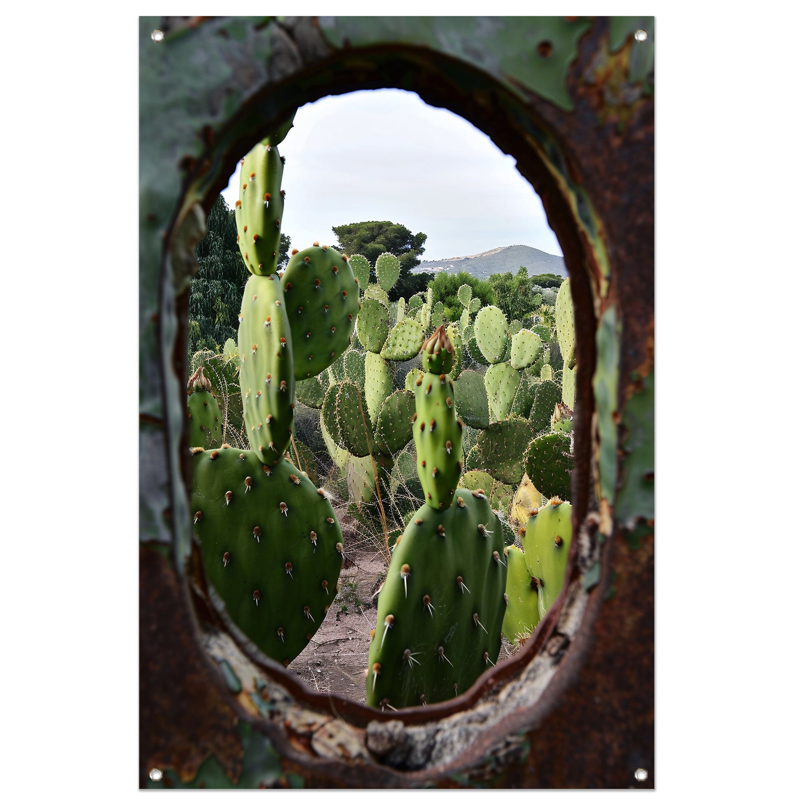 Cactustuin Gevangen in Roestig Raam tuinposter