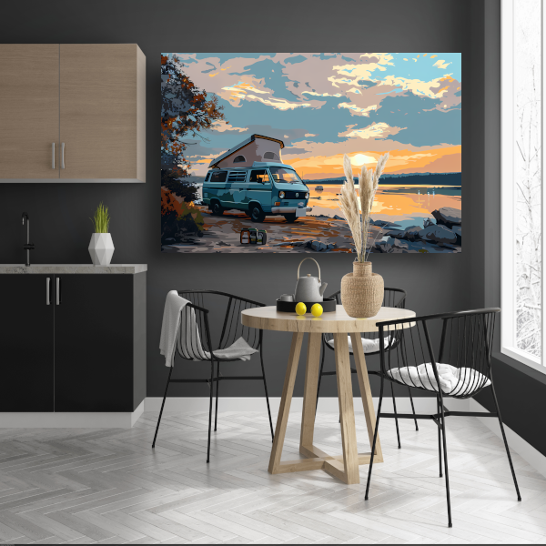 Een canvas met baklijst geeft je interieur een luxe en afgewerkte uitstraling. Onze baklijsten zijn gemaakt van hoogwaardig hout en verkrijgbaar in zwart met een zichtbare houtnerfstructuur, wat een moderne en elegante look biedt. De lijst heeft een framedikte van 3,5 cm. De montage van het canvas in de baklijst en aan de muur is eenvoudig.