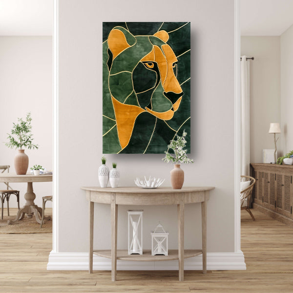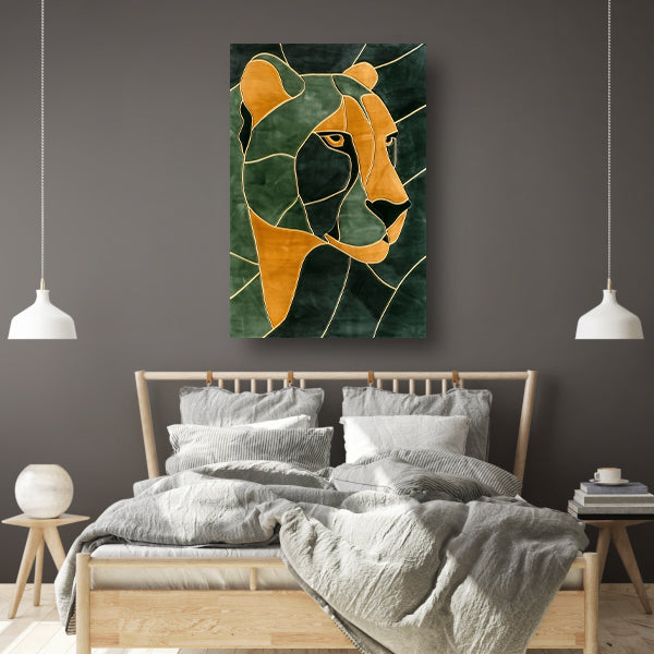 Cheeta in glas-in-lood stijl schilderij canvas met baklijst