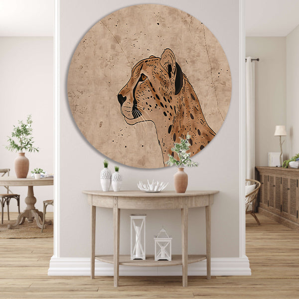 Dit kunstwerk is verkrijgbaar in diverse afmetingen, zodat je altijd een formaat kunt kiezen dat perfect past bij jouw interieur. Of je nu een kleine toevoeging wilt voor een subtiel accent of een grote eye-catcher voor aan de muur, met deze cheeta muurcirkel creëer je direct sfeer en stijl in elke ruimte.
