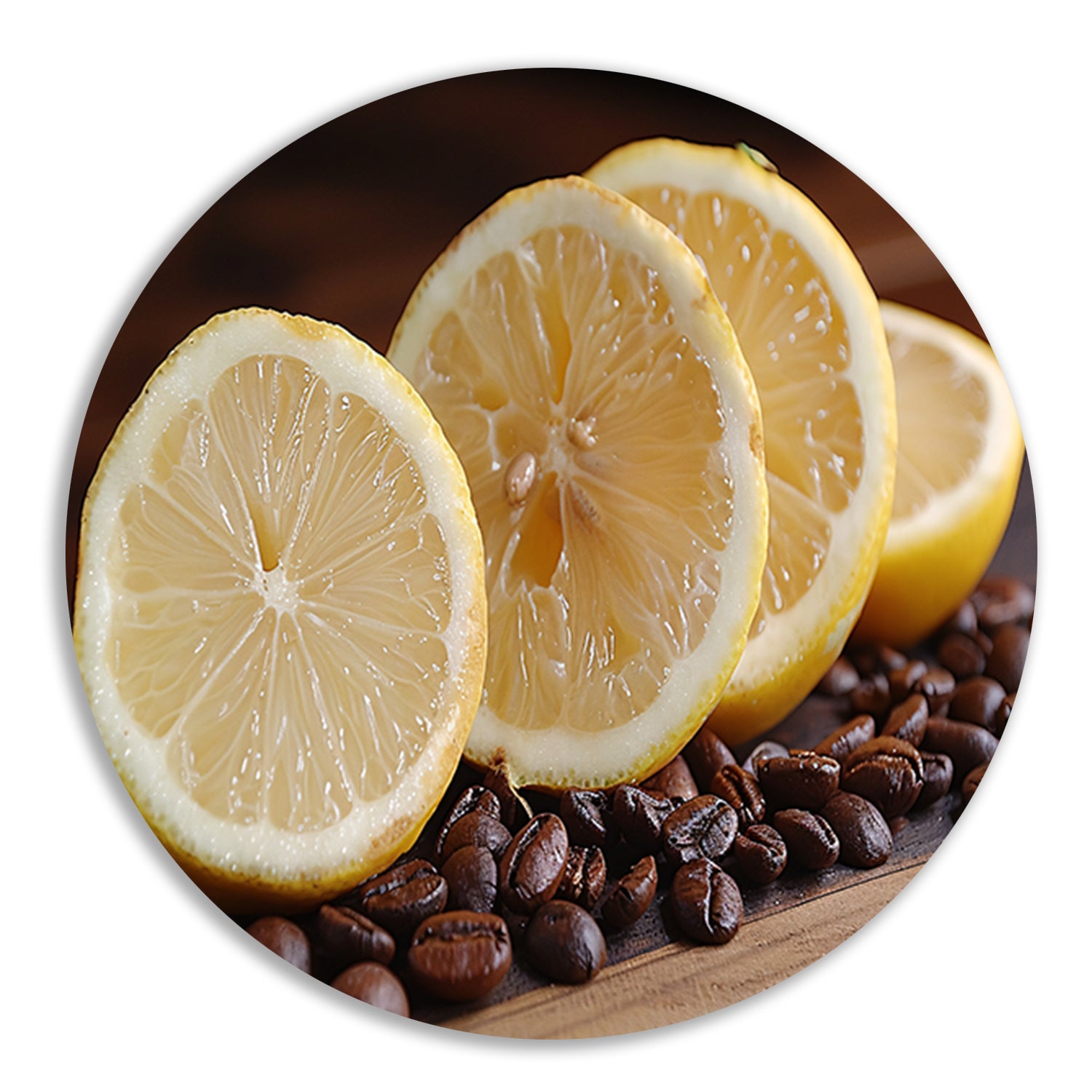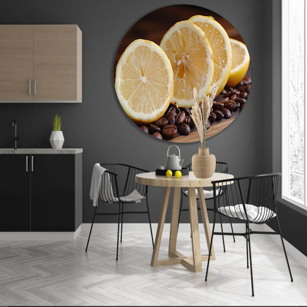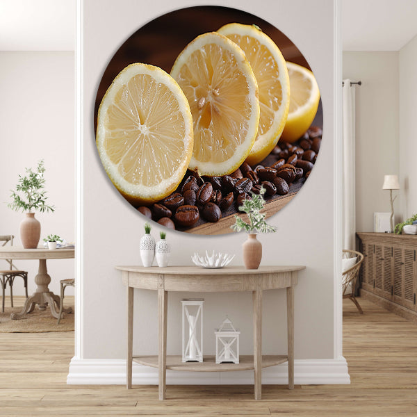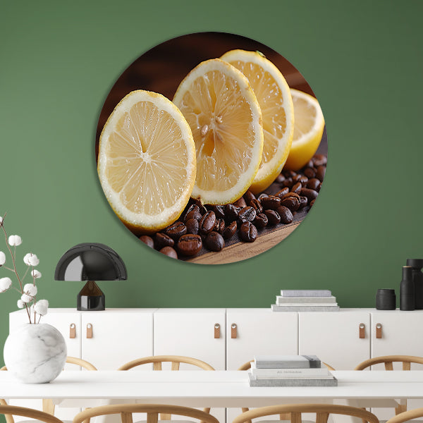 Citroenen en koffiebonen stilleven aluminium muurcirkel