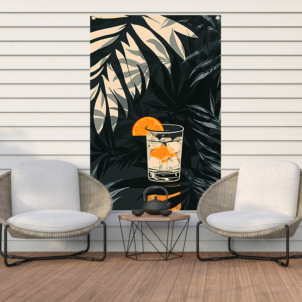 Citruscocktail in Glas met IJs en Planten tuinposter