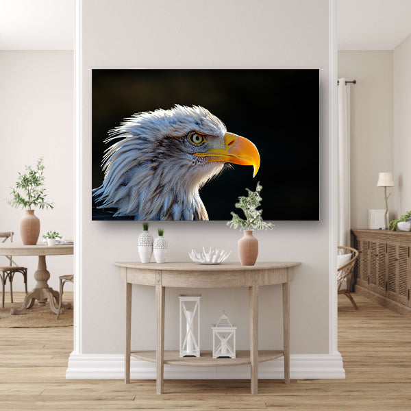 Dit kunstwerk is verkrijgbaar in meerdere maten, zodat je het perfect kunt afstemmen op de beschikbare ruimte in je interieur. Of je nu op zoek bent naar een eyecatcher voor de woonkamer, slaapkamer of kantoor, deze close-up van de Amerikaanse Wouw zal zeker indruk maken.