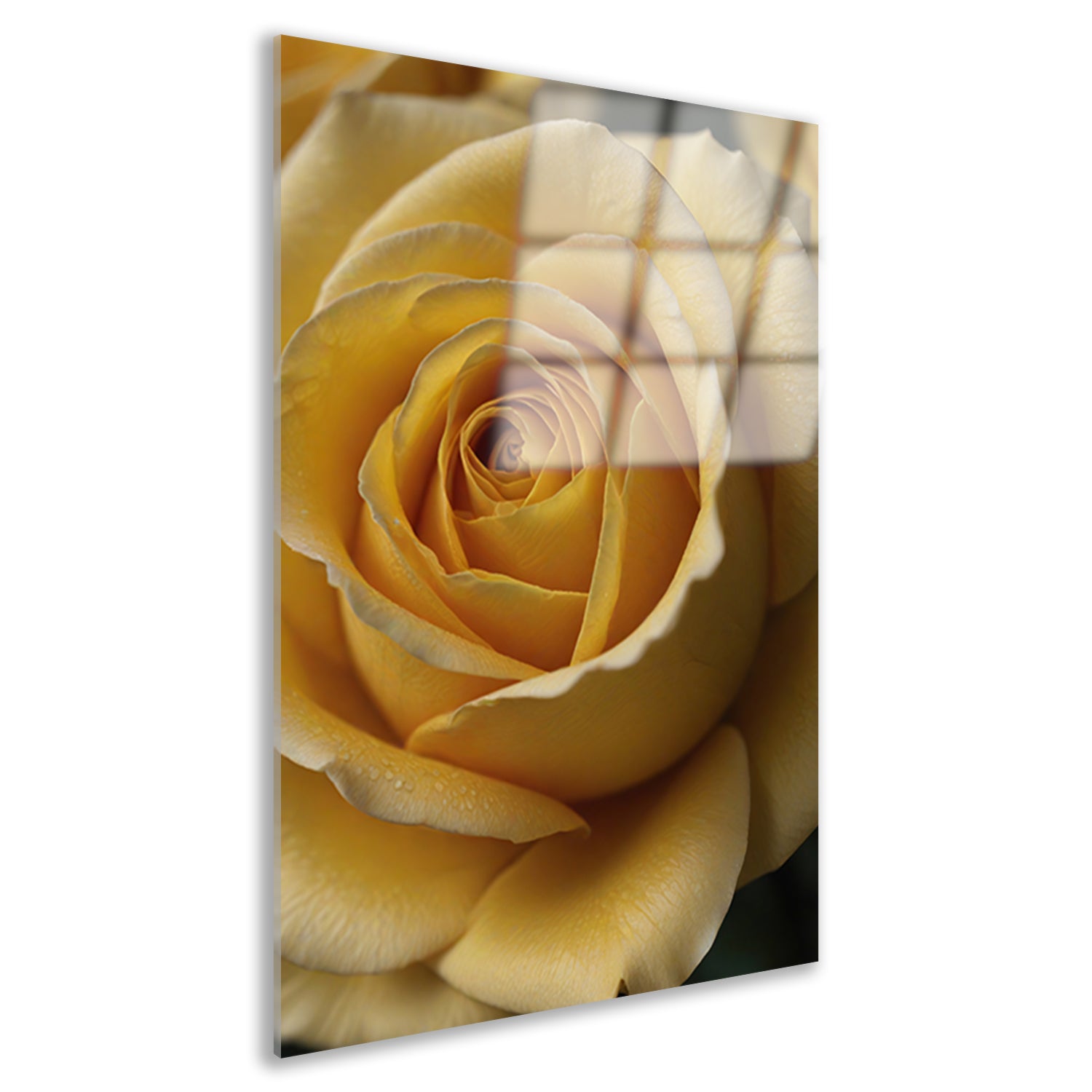 Close-up Gele Roos met Dauwdruppels acrylglas