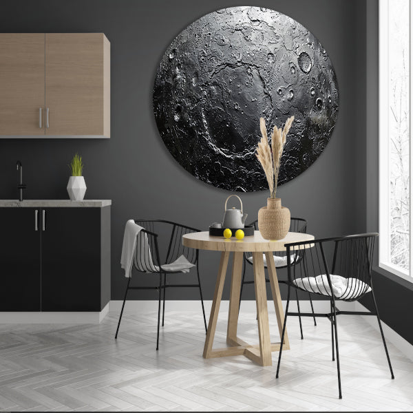 Of je nu een liefhebber bent van astronomie of gewoon op zoek bent naar een unieke en stijlvolle toevoeging aan je interieur, deze close-up maanoppervlak muurcirkel is een absolute aanrader. Bestel hem vandaag nog en geniet van de magie van de maan in je eigen huis!