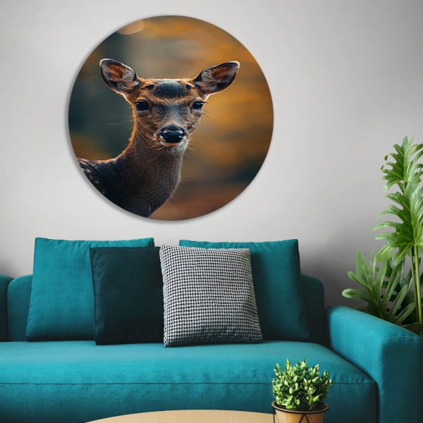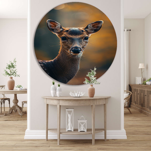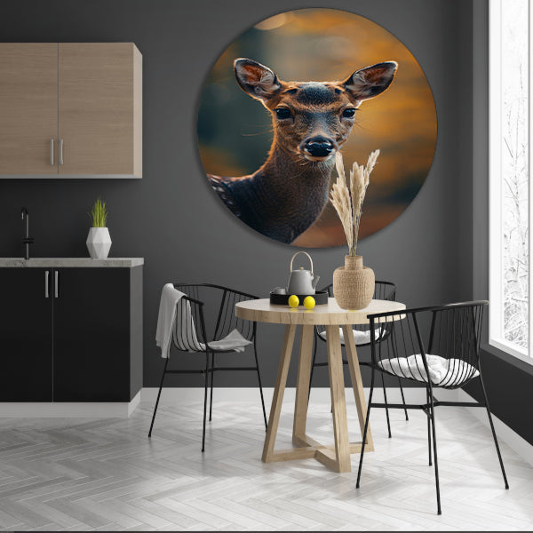 Close-up portret van een jong hert in het bos forex muurcirkel
