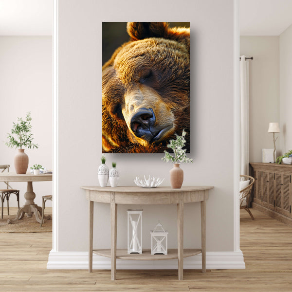 Met onze close-up portret van een slapende beer canvas haal je niet alleen een fraai stuk kunst in huis, maar ook de charme en verwondering van de natuur. Voeg dit canvas toe aan je collectie en laat de magische wereld van de dierenrijk je dagelijkse leven verrijken. Maak van je huis een plek van rust en schoonheid en geniet van de rustgevende uitstraling die dit kunstwerk met zich meebrengt. Wacht niet langer en verrijk jouw woonruimte met deze betoverende afbeelding!