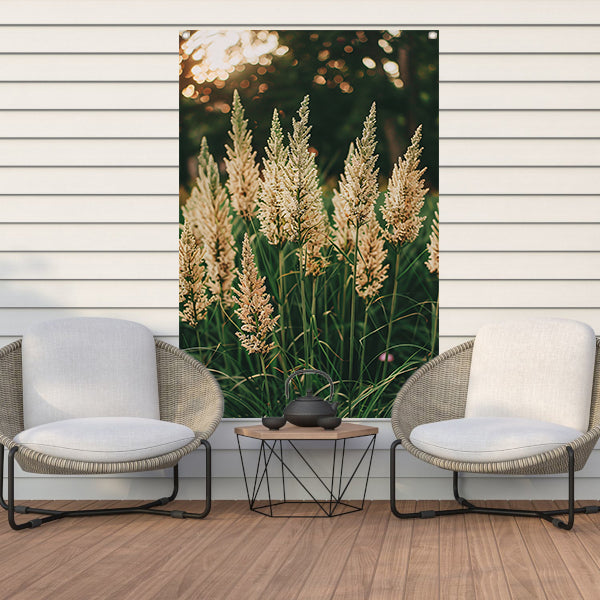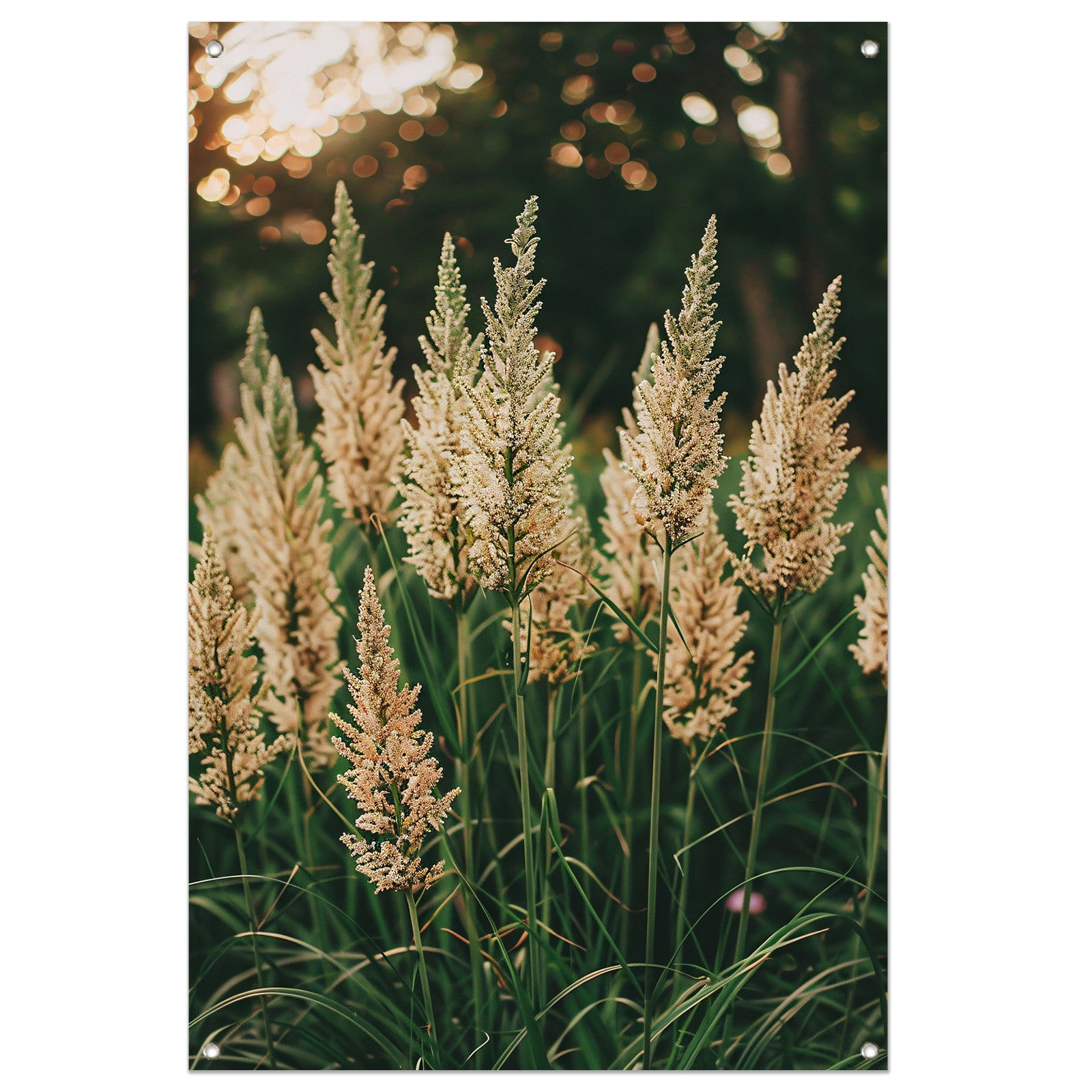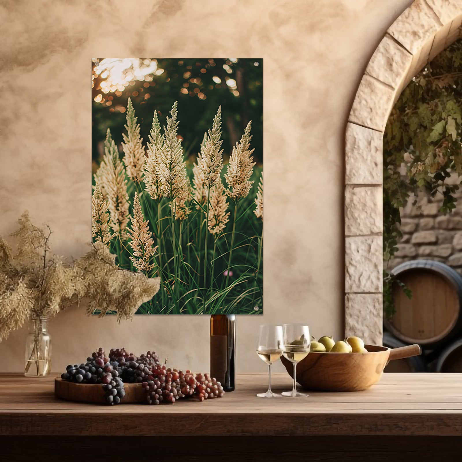 Close-up van Beige Grassen in Zonneschijn tuinposter