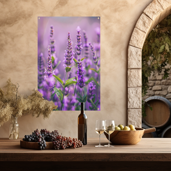 Close-up van bloeiende lavendelbloemen in paars tuinposter