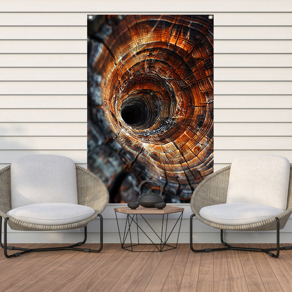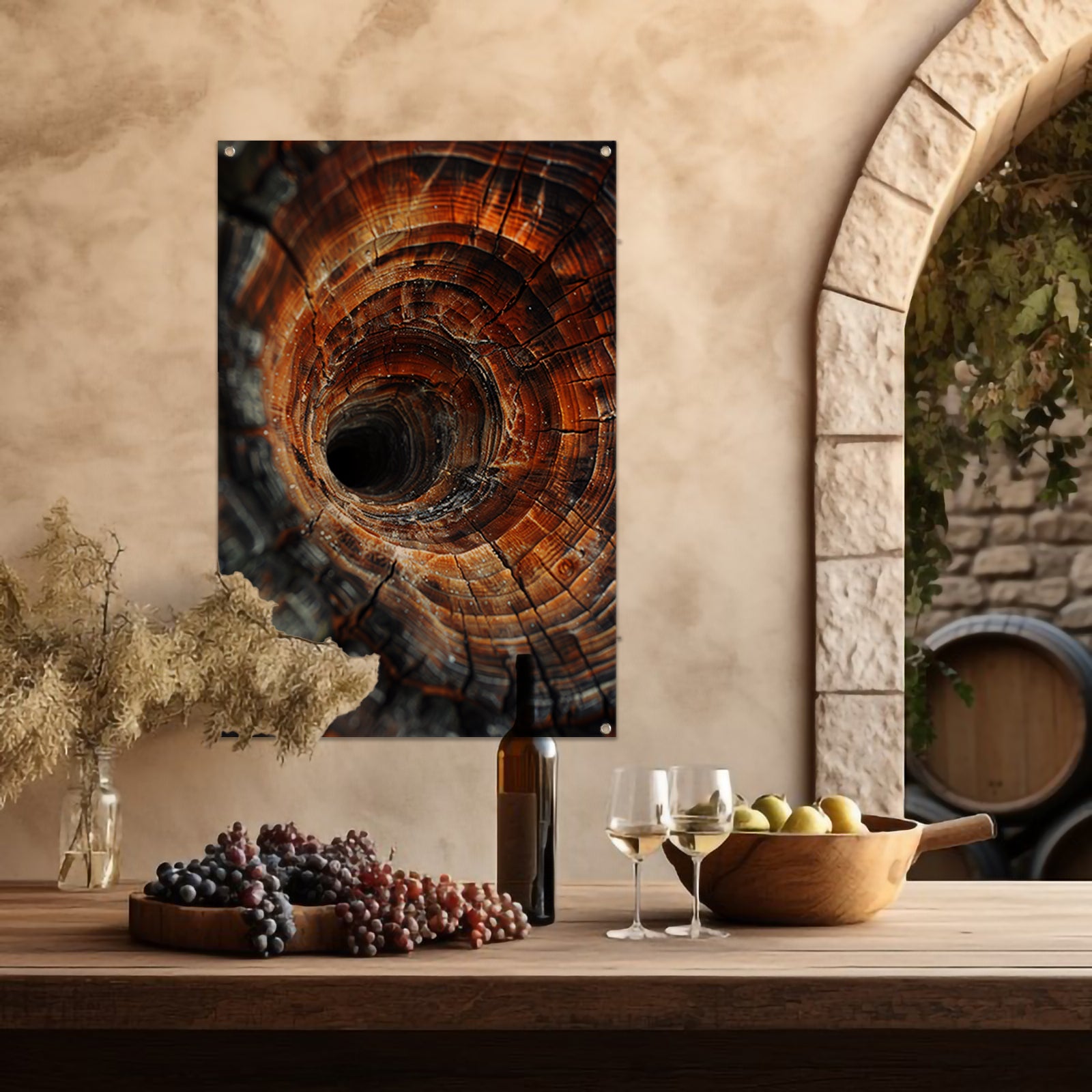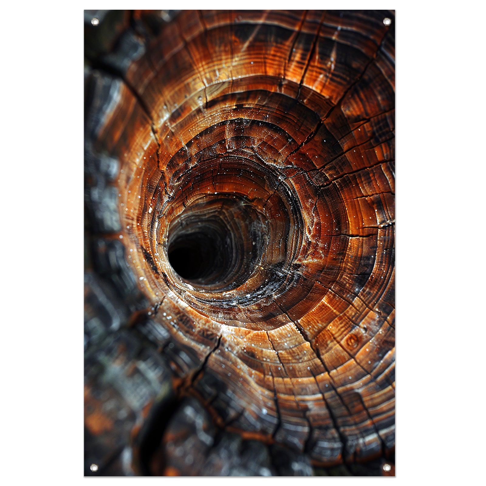 Close-up van een boomstam met draaikolkpatroon tuinposter