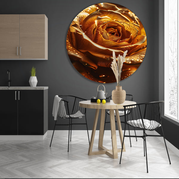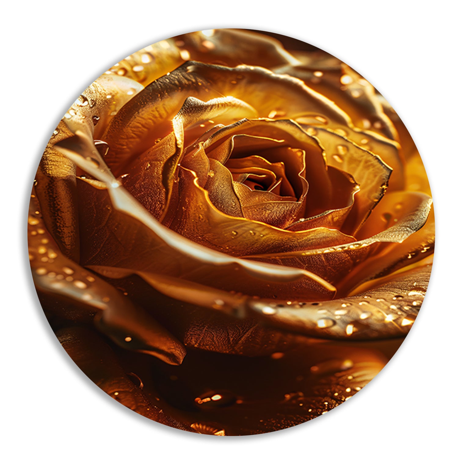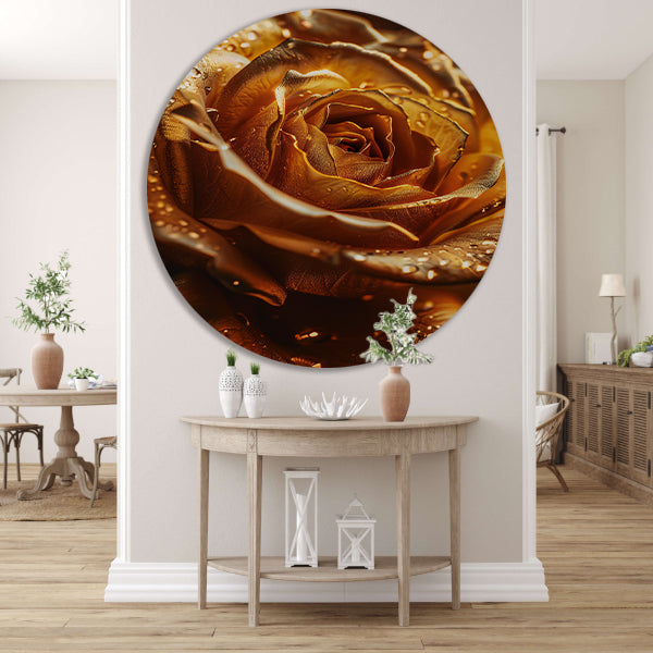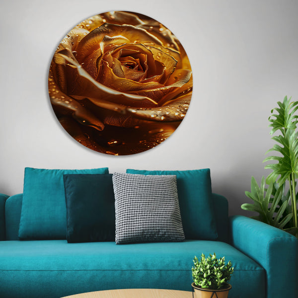 Close-up van een gouden roos met waterdruppels forex muurcirkel