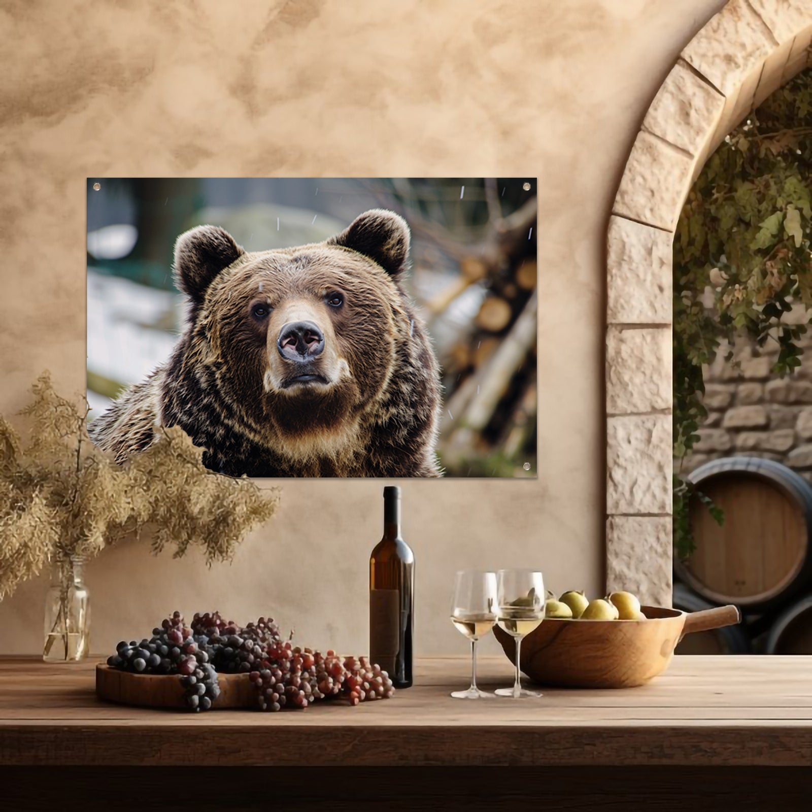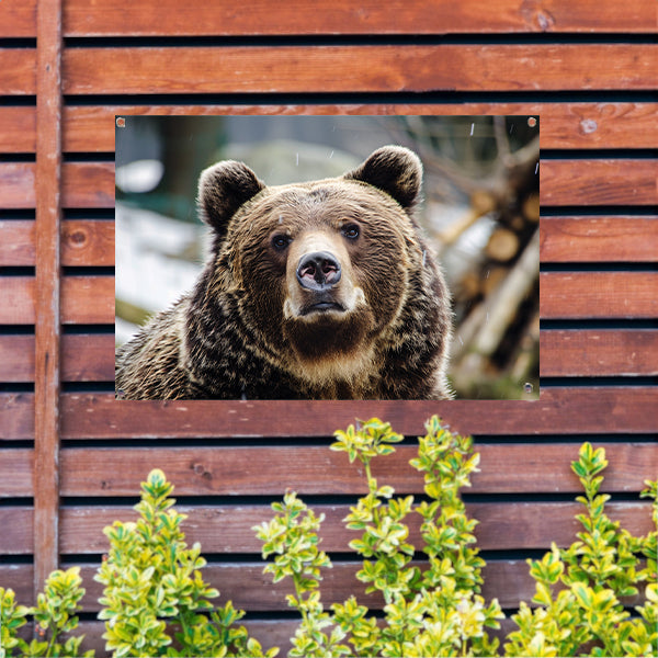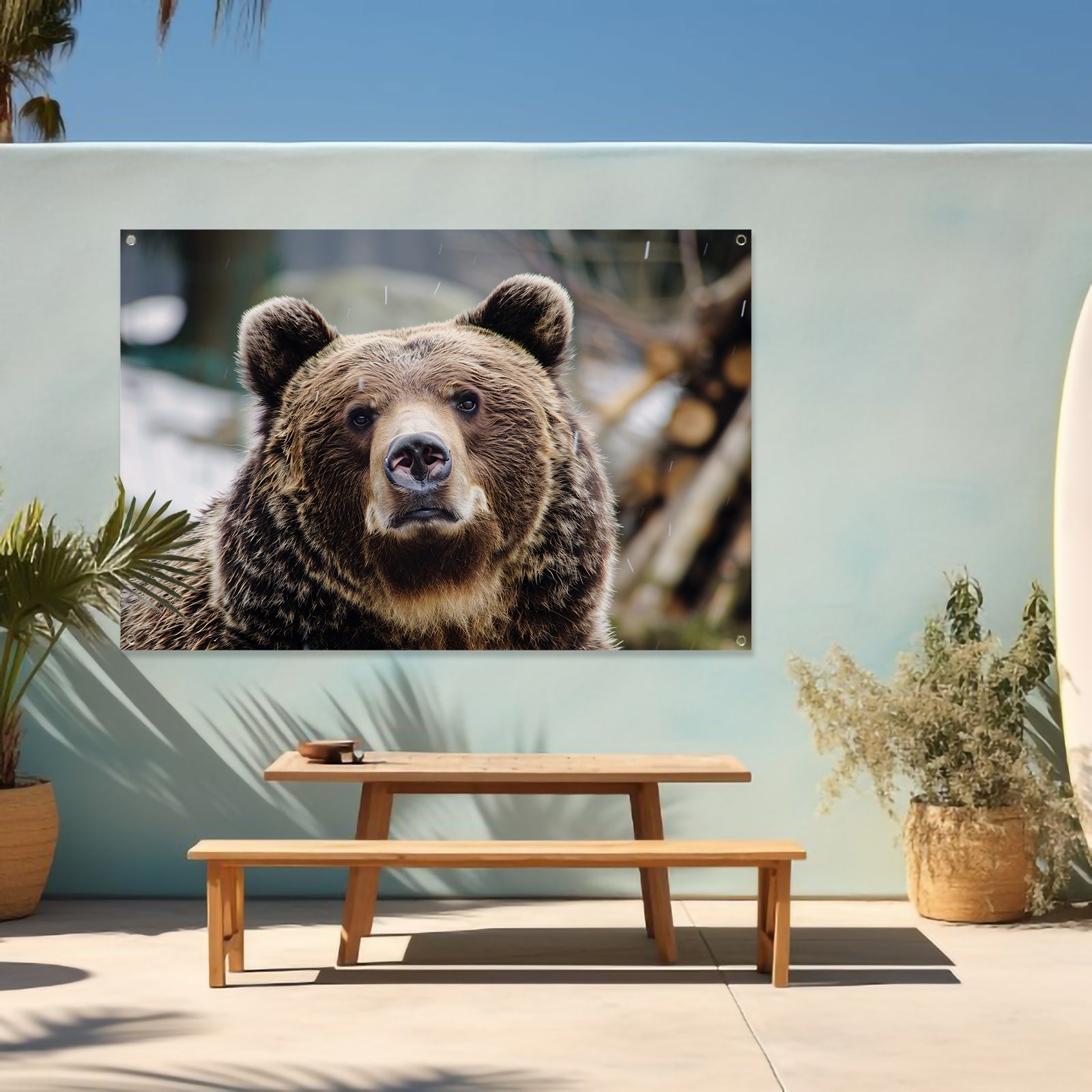 Close-up van een nieuwsgierige bruine beer tuinposter