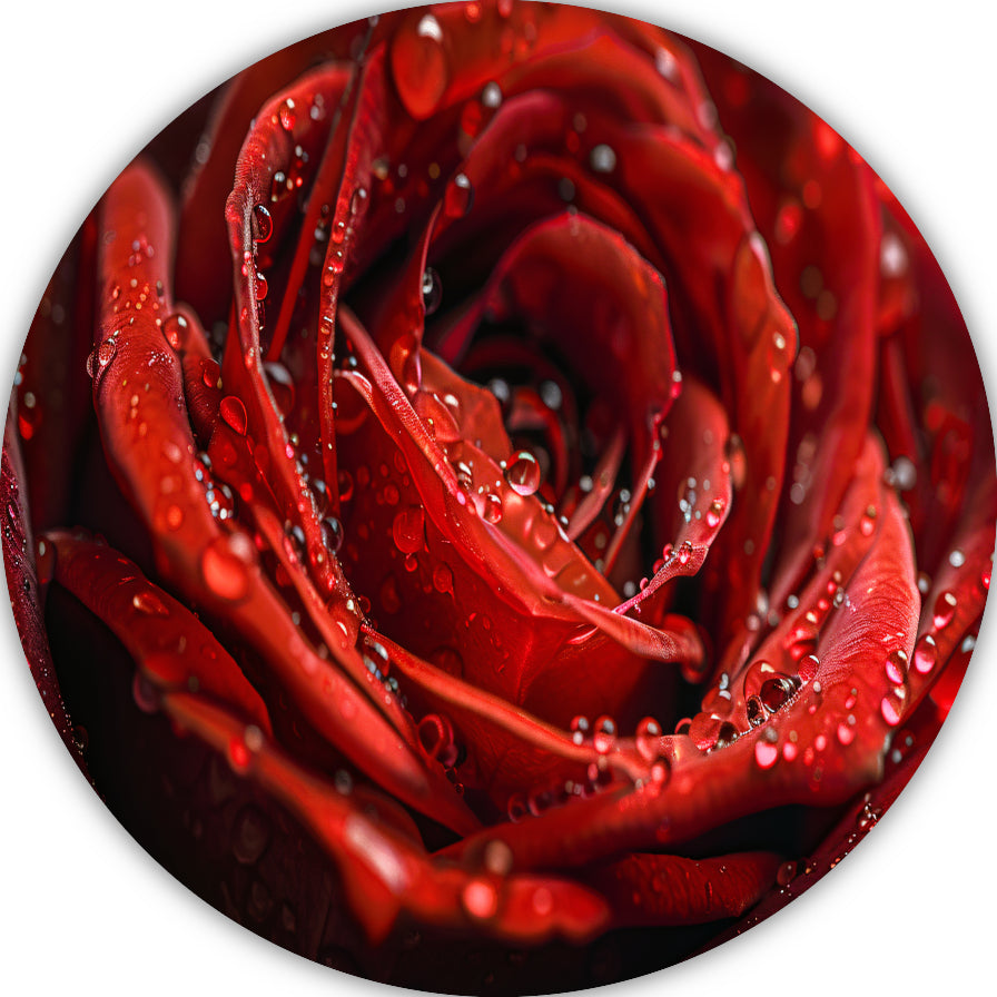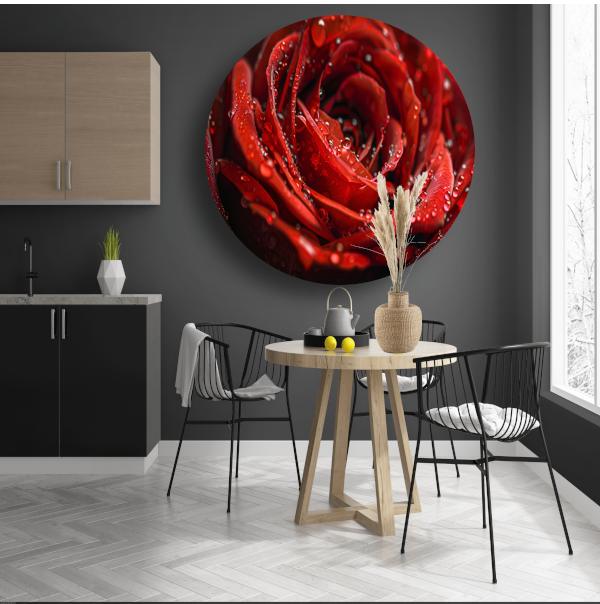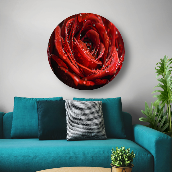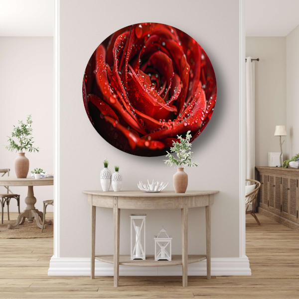 Close-up van een rode roos met dauwdruppels forex muurcirkel