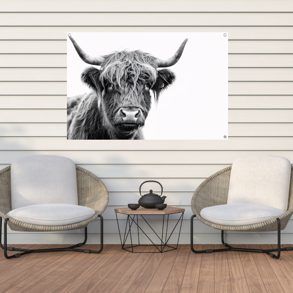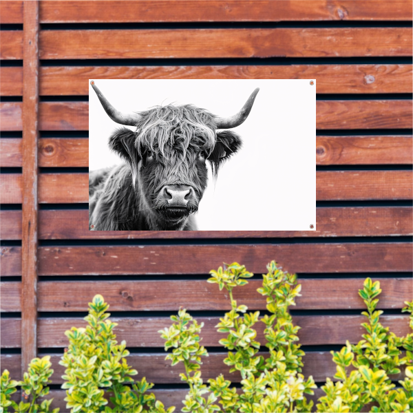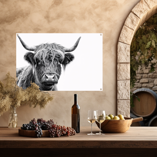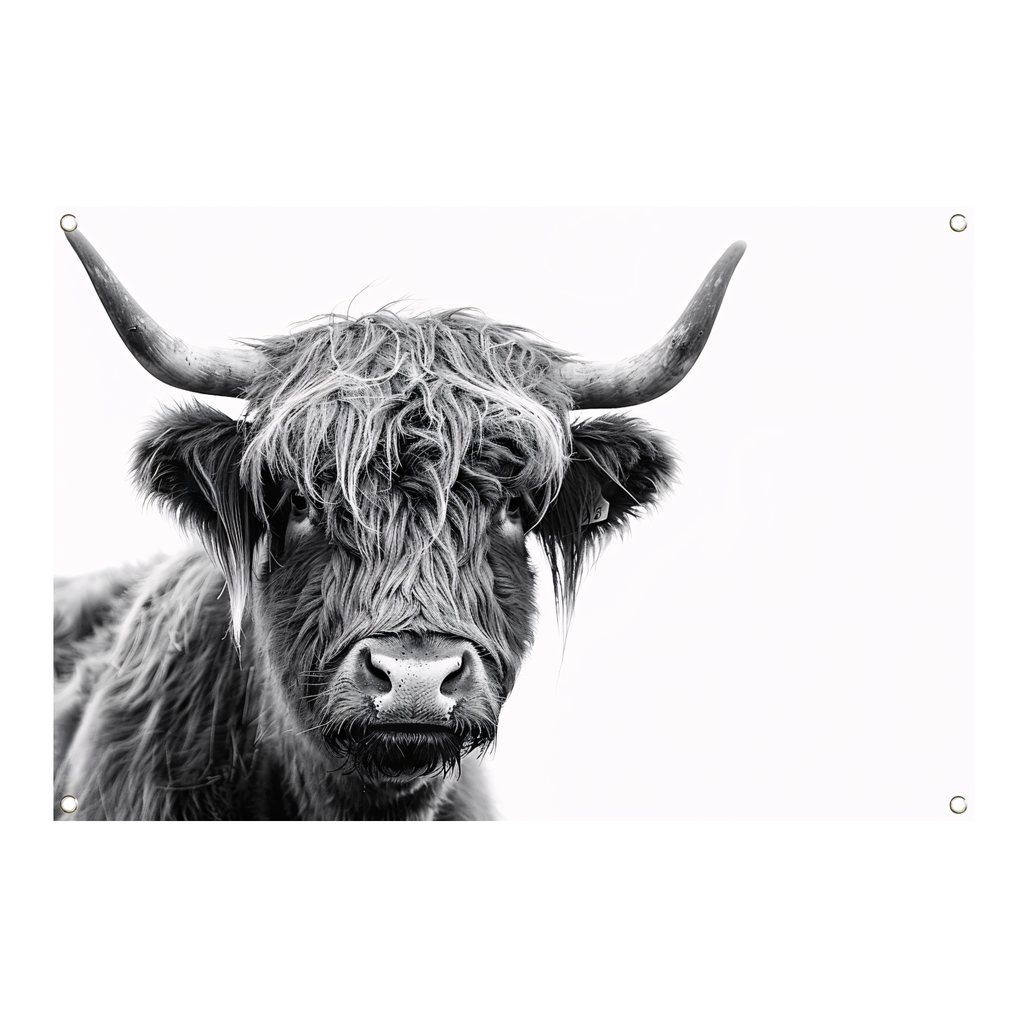 Close-up van een Schotse Hooglander in zwart-wit tuinposter
