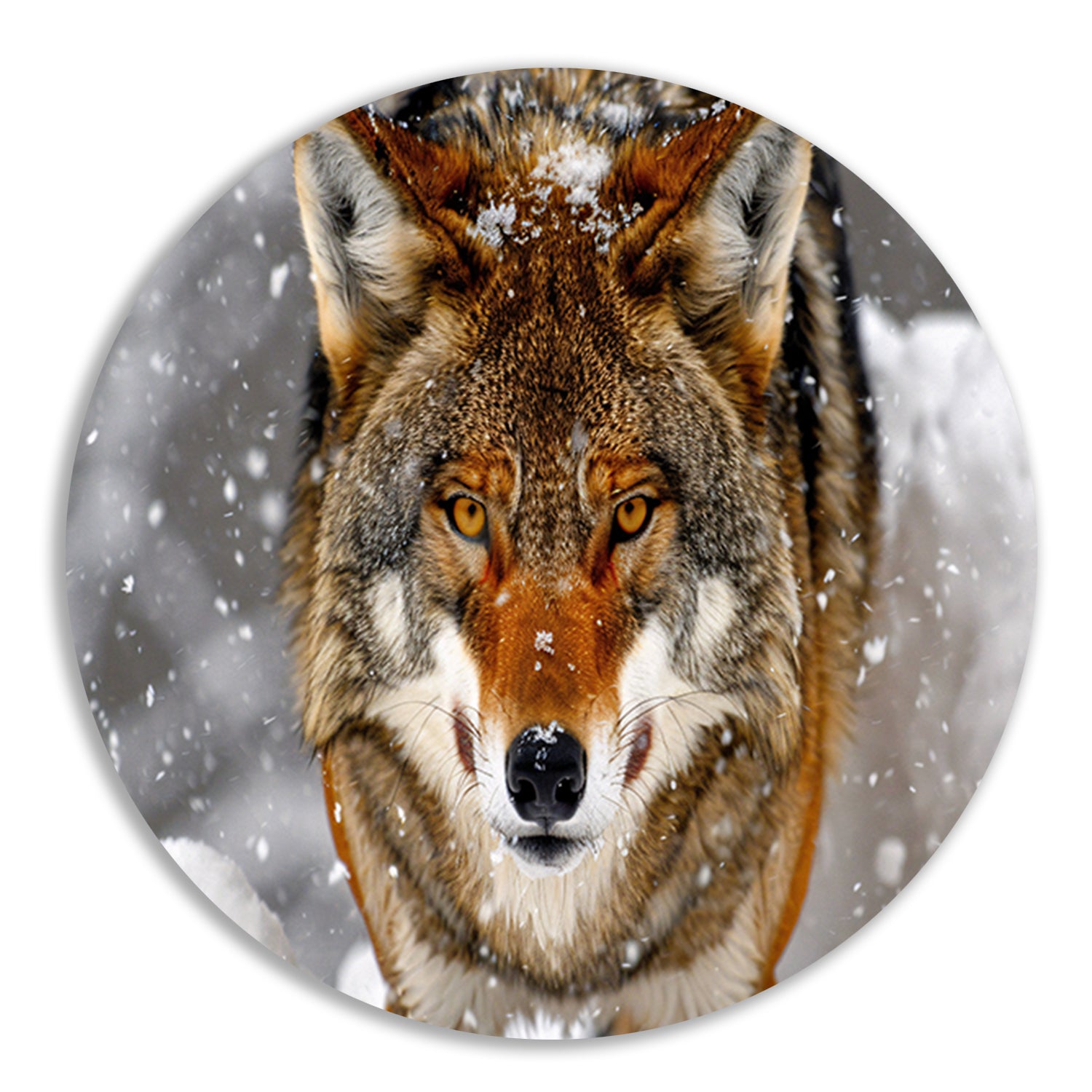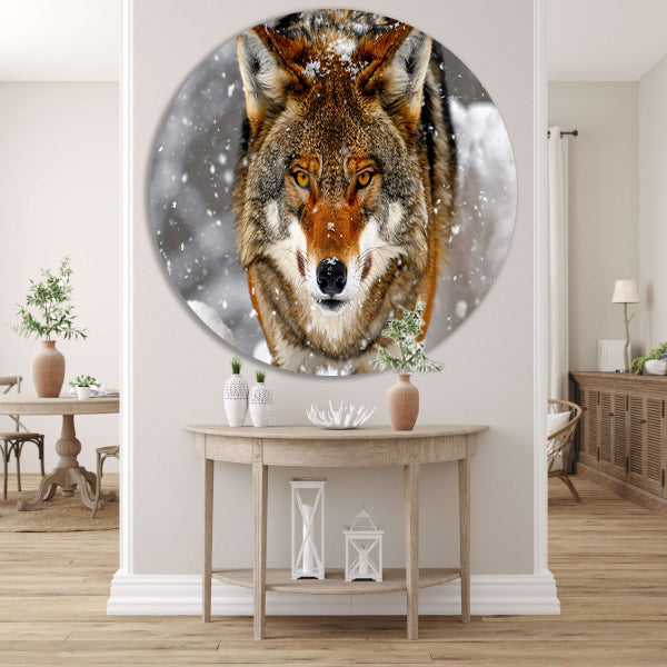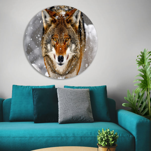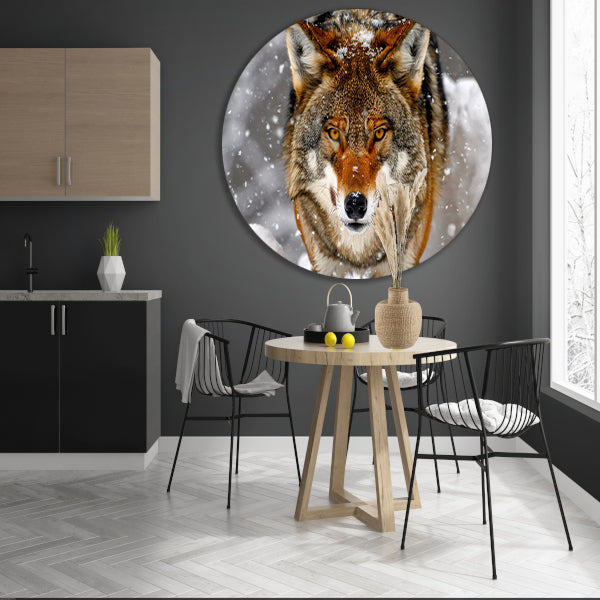 Close-up van een Wolf in de Sneeuw aluminium muurcirkel