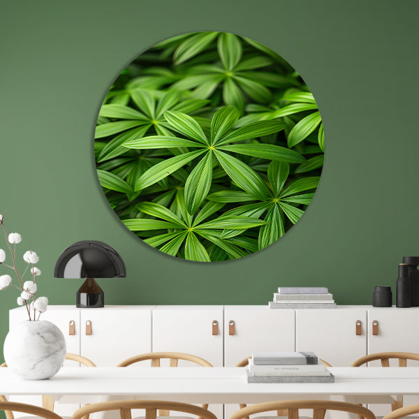Breng de schoonheid van de natuur in huis met deze close-up van groene bladeren met schaduwspel op een muurcirkel van 3 mm forex. Met het gratis ophangsysteem en de diverse maten is deze muurcirkel de ideale toevoeging aan ieder interieur.