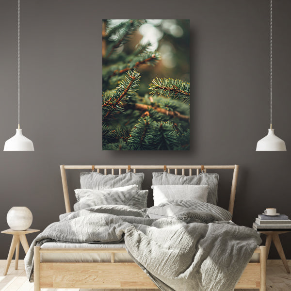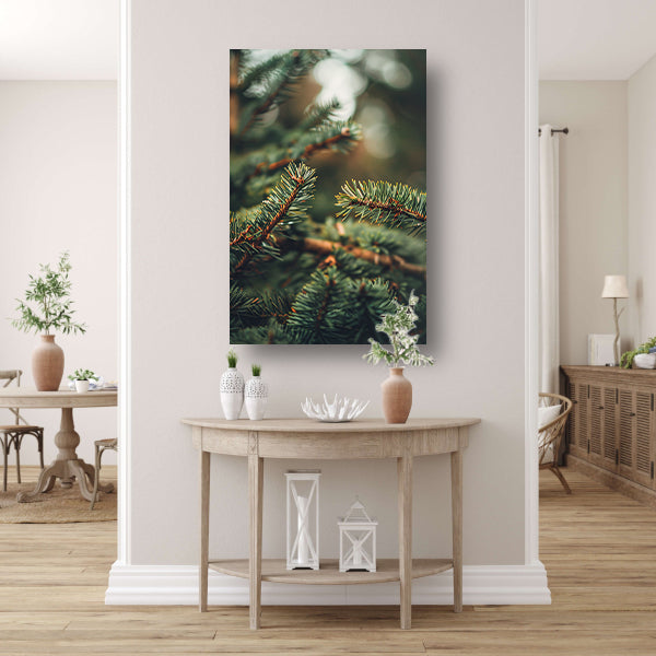 Close-up van Groene Dennennaalden met Bokeh canvas