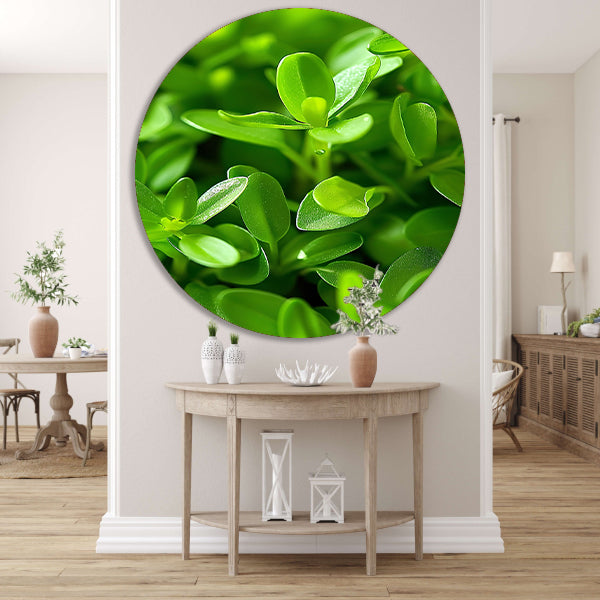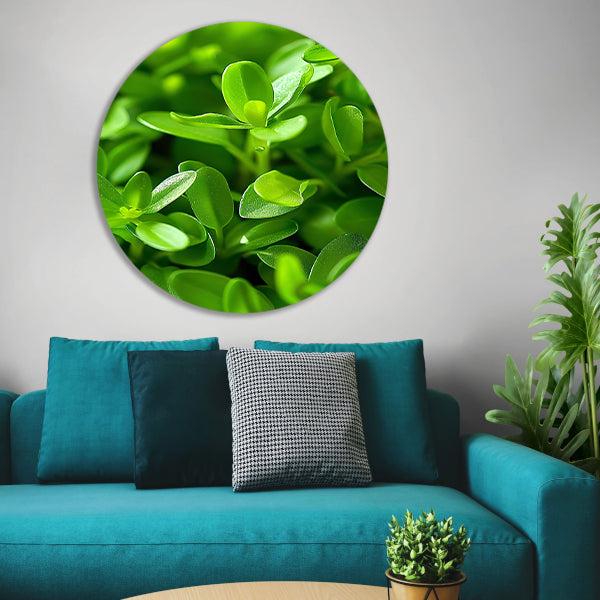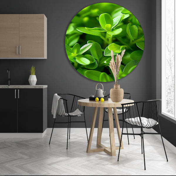 Close-up van Groene Planten met Dauwdruppels aluminium muurcirkel