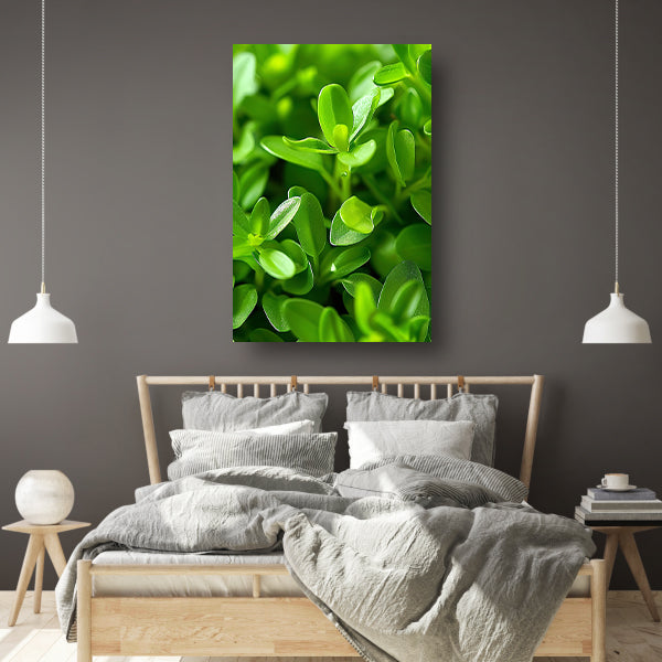 Close-up van Groene Planten met Dauwdruppels canvas