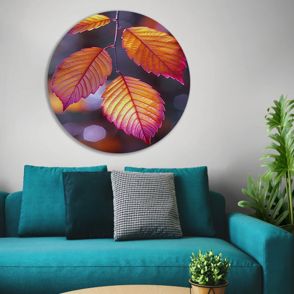 Close-up van herfstbladeren aan tak forex muurcirkel