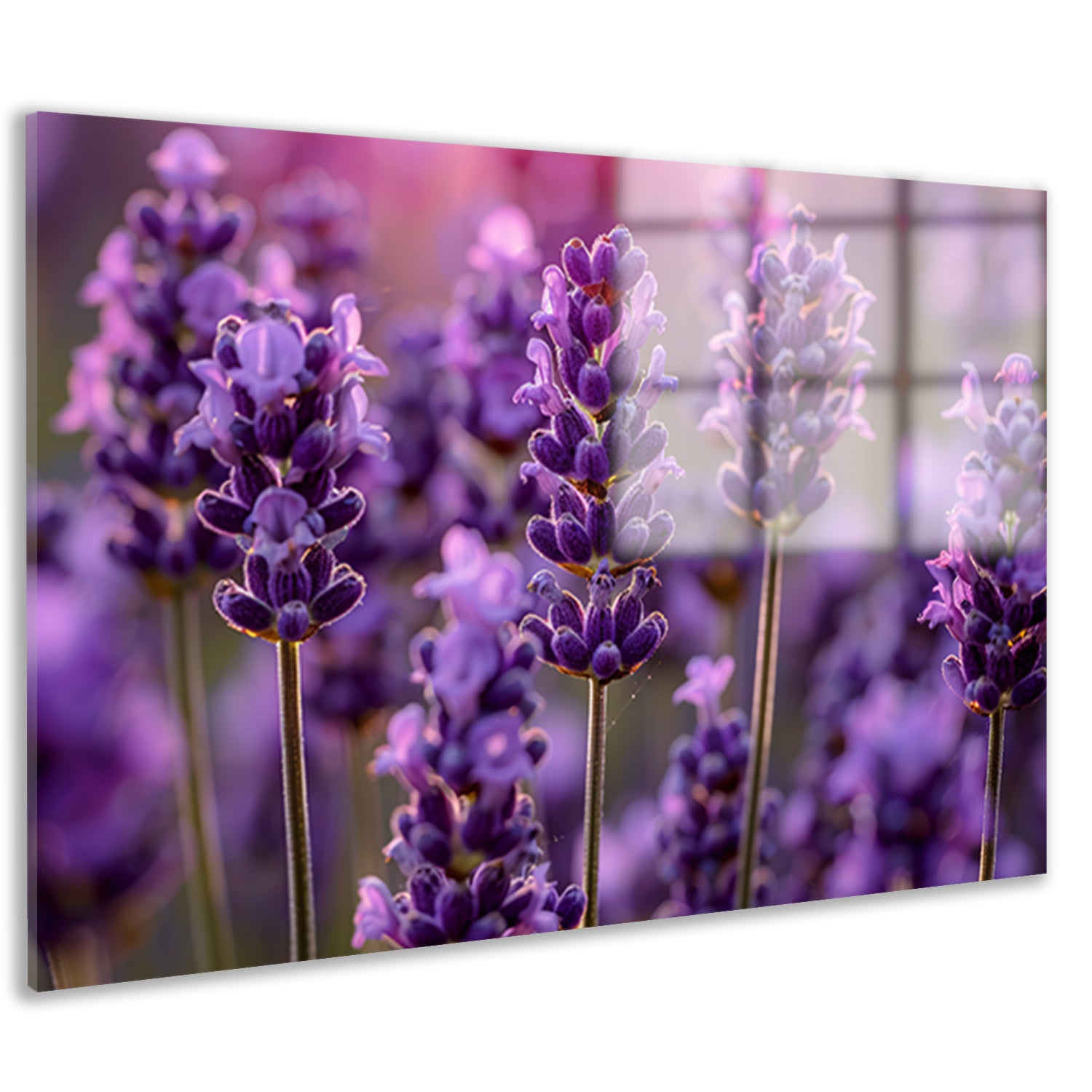 Close-up van lavendelbloemen in zachte zonneschijn acrylglas