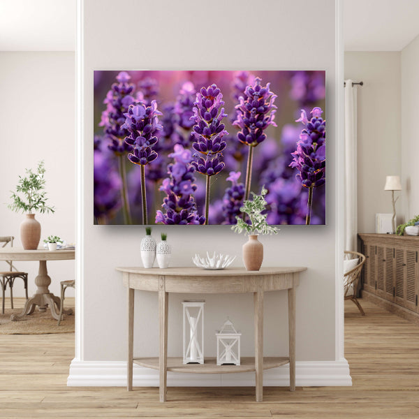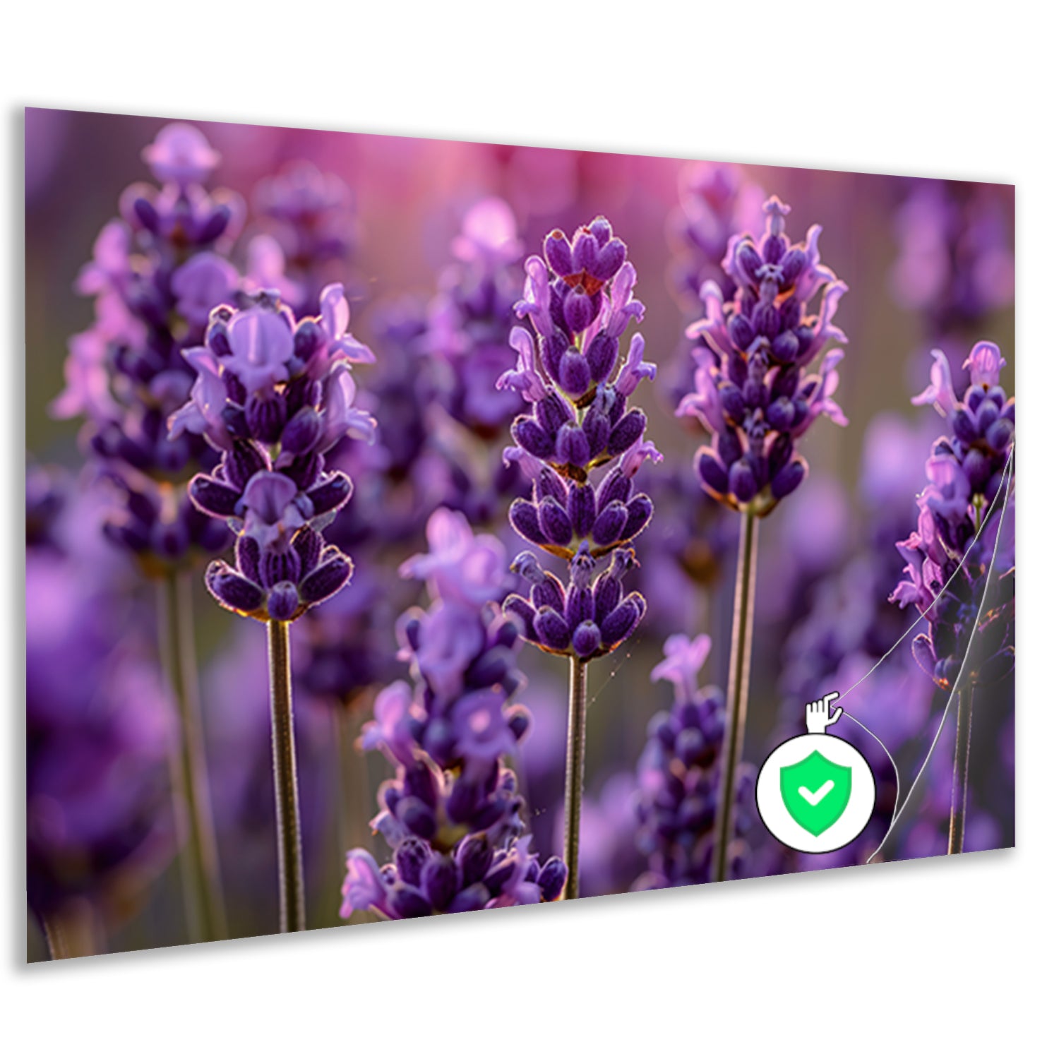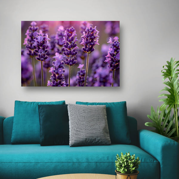 Close-up van lavendelbloemen in zachte zonneschijn poster