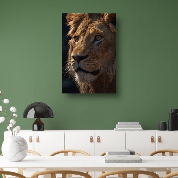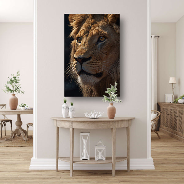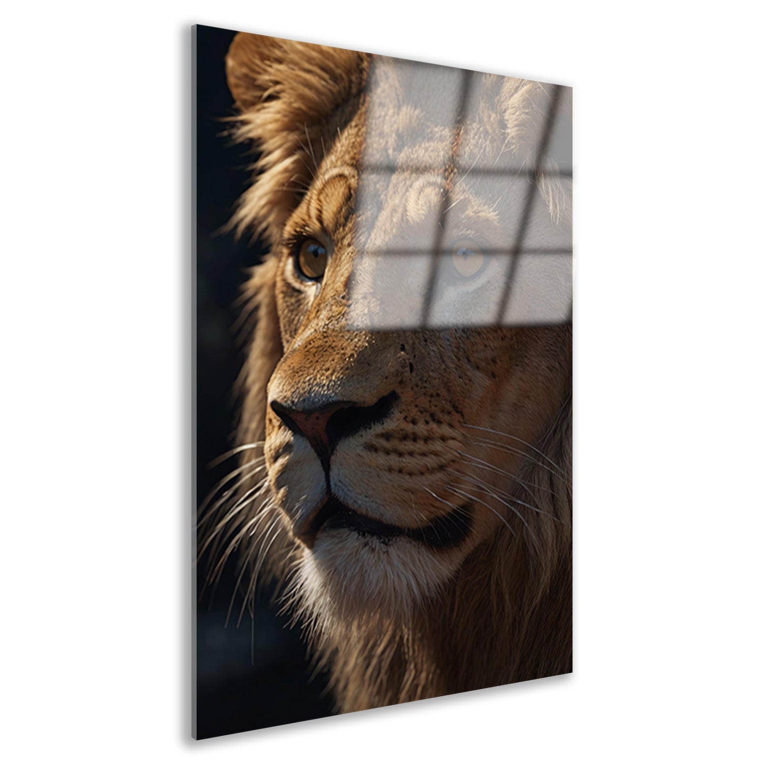 Close-up van leeuw met indringende blik acrylglas
