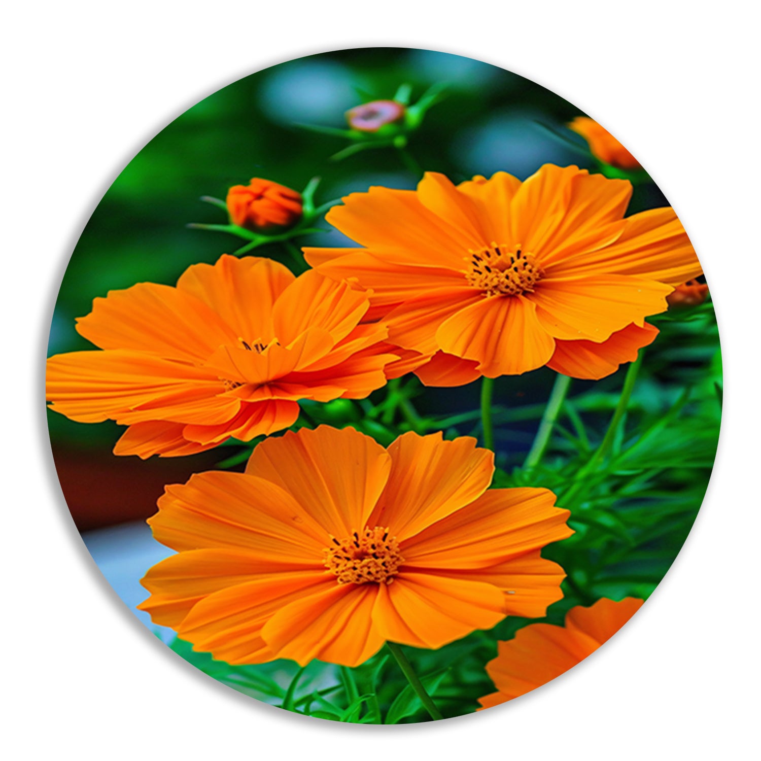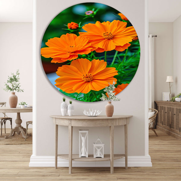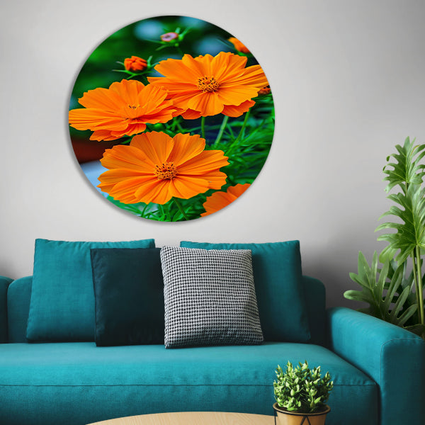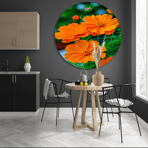 Close-up van Oranje Bloemen in volle Bloei aluminium muurcirkel