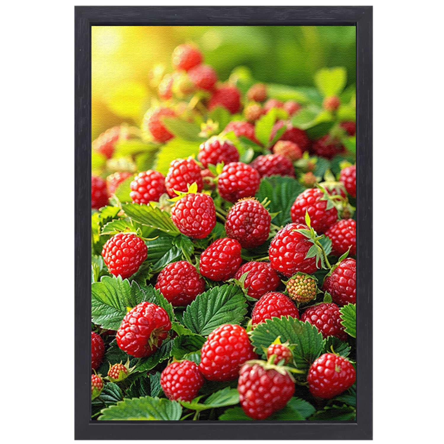 Close-up van Rijpe Frambozen in Zonlicht canvas met baklijst