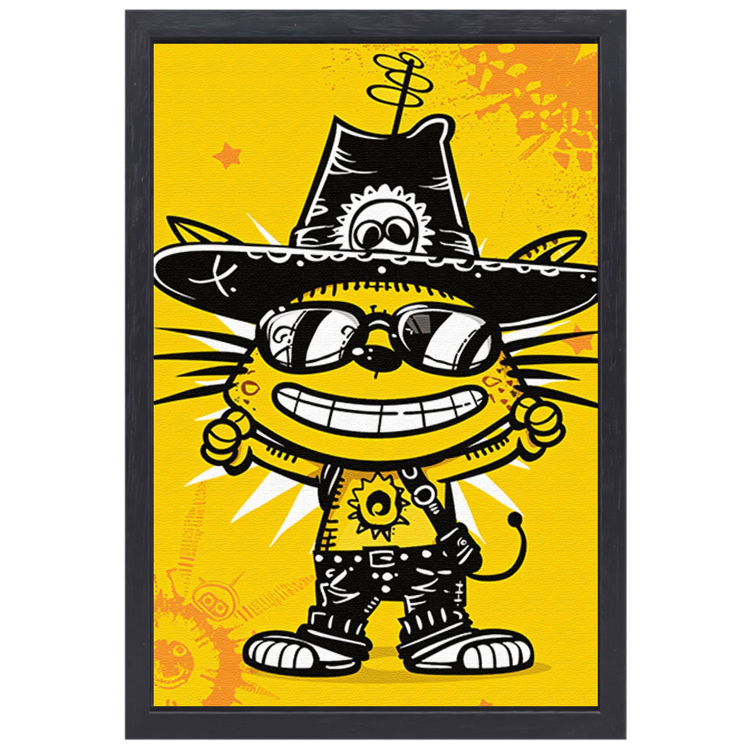 Coole Graffiti Kat met Zonnebril canvas met baklijst