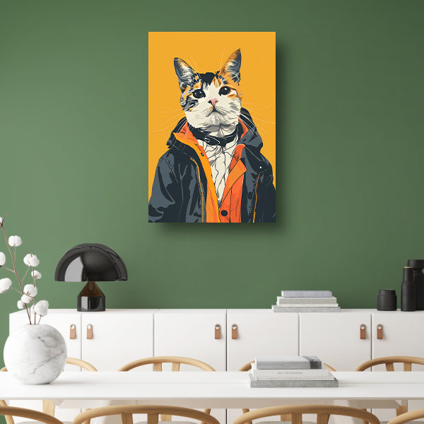 Coole Kat in Kleurrijk Regenjas canvas met baklijst