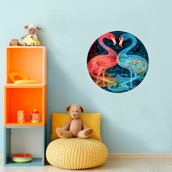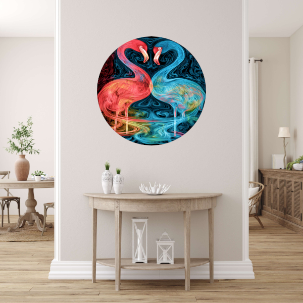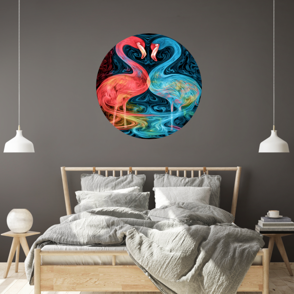 Breng de theatrale en elegante bewegingen van de flamingo's in huis met deze prachtige dans van de flamingo's in kleur forex muurcirkel. Een kunstwerk dat zeker een glimlach op je gezicht zal toveren elke keer dat je er naar kijkt.