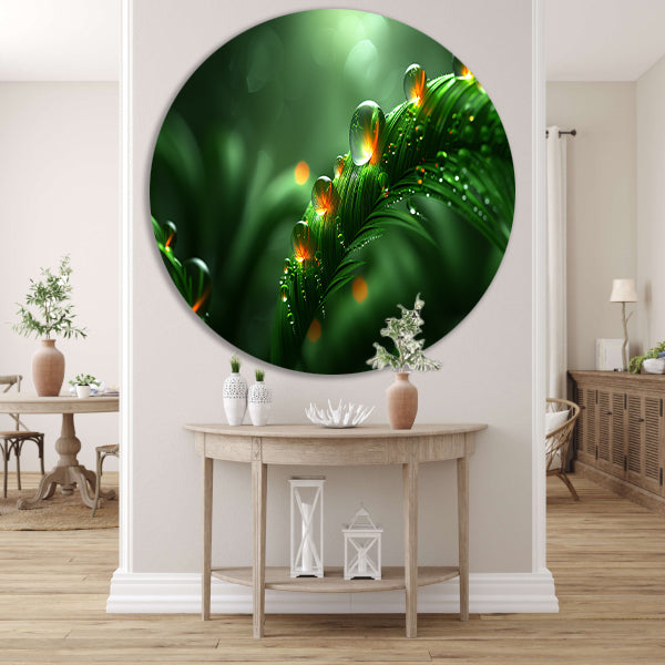 Dauwdruppels glinsterend op weelderige bladeren forex muurcirkel
