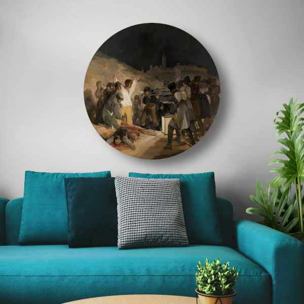 Breng sfeer en stijl in huis met deze prachtige "De Derde mei 1808" muurcirkel van Francisco Goya. Perfect voor kunstliefhebbers en geschiedenisfanaten!