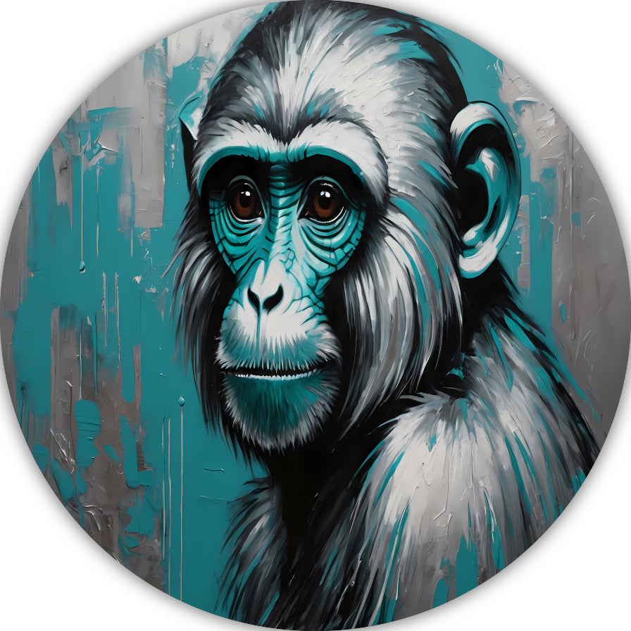 De Intense Blik van een Turquoise Aap aluminium muurcirkel