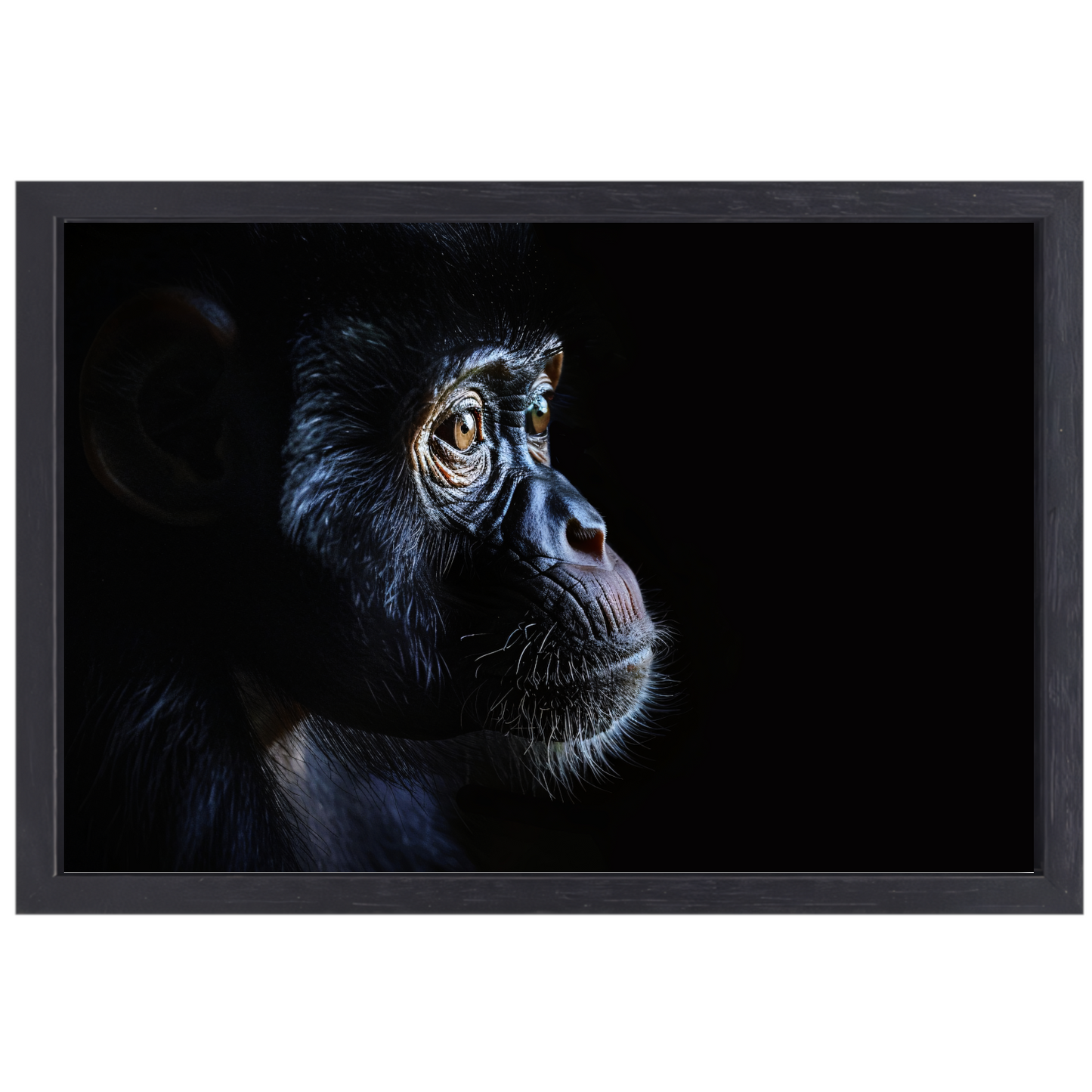 De Stille Getuige - Aap in het Donker canvas met baklijst