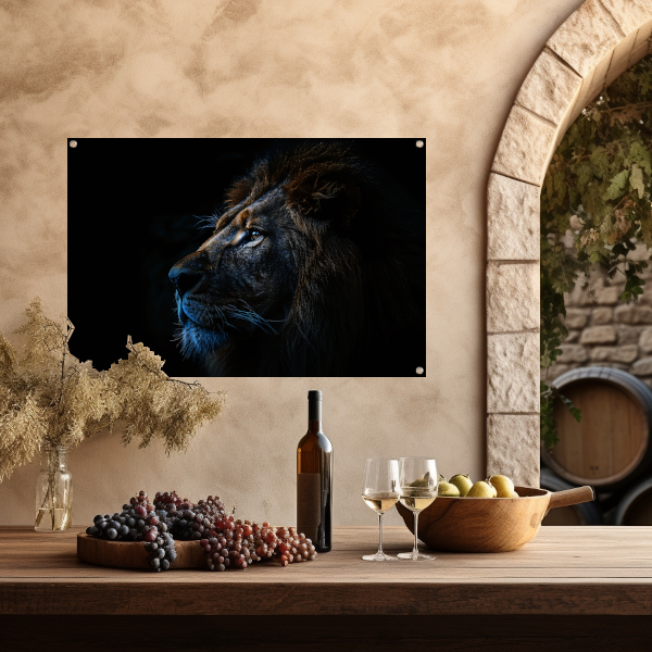 De stille majesteit van de nachtelijke leeuw tuinposter